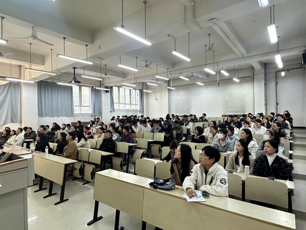 王国平以“开题报告撰写”为主题,分别从文献综述、课题研究方案设计、主要进度安排及参考文献等四部分进行了细致讲解,并分享典型案例,对学生在开题报告中容易存在问题提供了有效帮助。