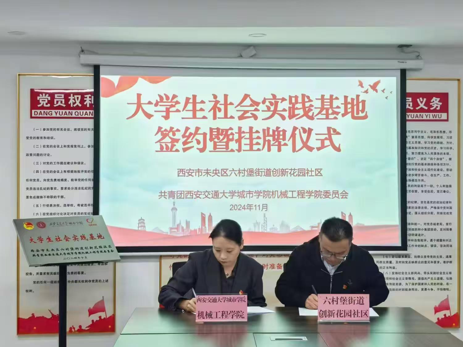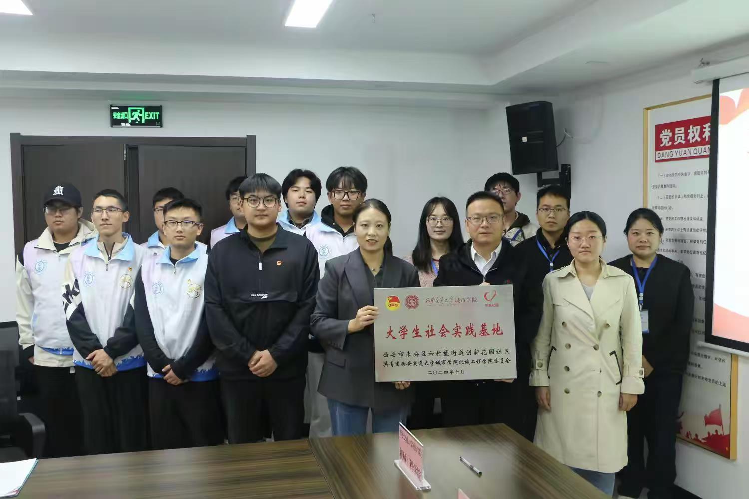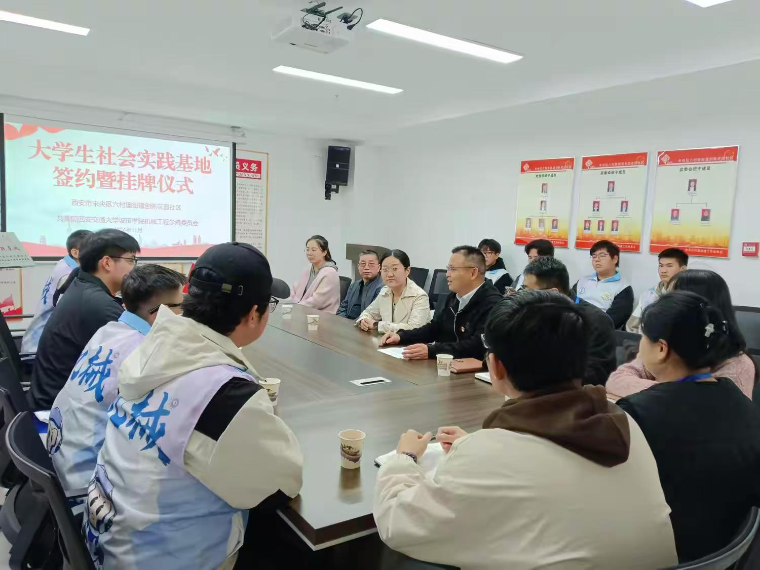 为深化社会实践育人工作,推动新时代青年学子社会实践与志愿服务活动融入基层社会治理,引领大学生在社会实践中受教育、长才干、做贡献。11月5日,机械工程学院大学生社会实践创新创业实践基地签约暨挂牌仪式在西安市未央区六村堡街道创新花园社区举行。未央区六村堡街道党建办副主任、团工委副书记赵玮、六村堡街道创新花园社区党支部书记江正兵、yl7703永利官网机械工程学院院长助理兼学生党支部书记王丽丽、团学工作负责人张哲源以及社区“小星星”志愿服务队志愿者、机械工程学院团学组织代表参加活动。