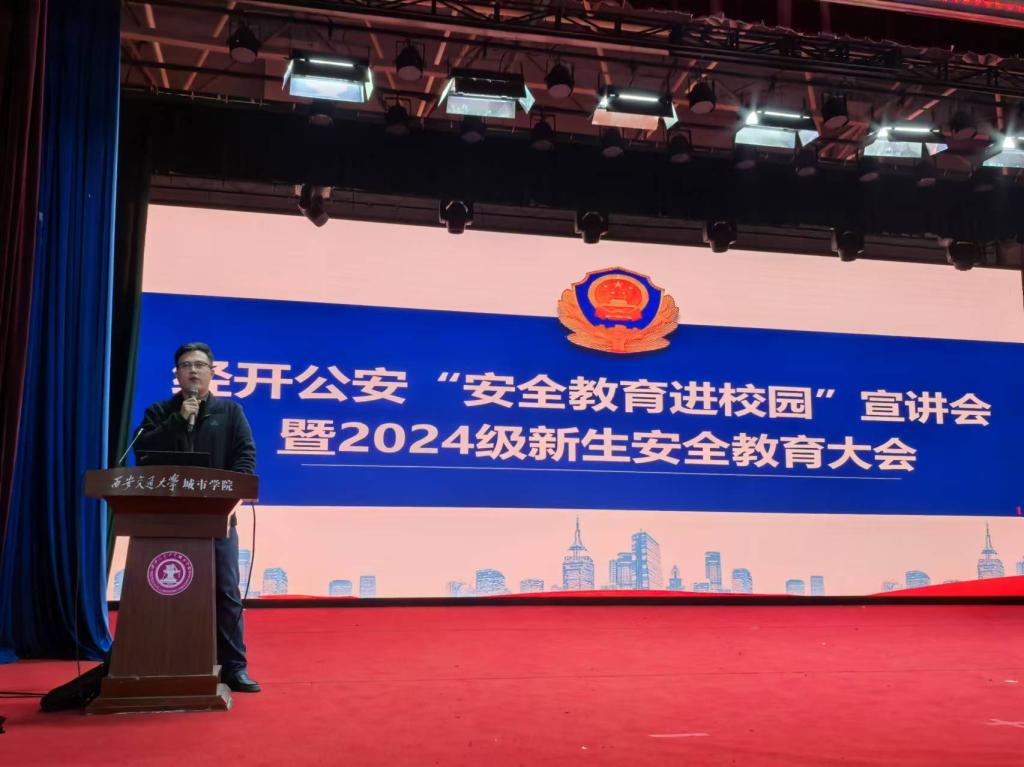 为了进一步做好学校安全教育工作,培养新生的安全意识和自我保护能力,学校于11月6日晚在大学生活动中心举办了经开公安“安全教育进校园”宣讲会暨2024级新生安全教育大会。大会由保卫处处长李凡昊主持。