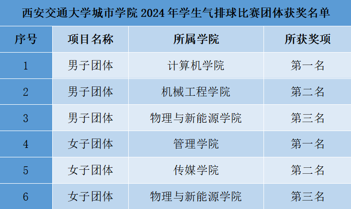 11月29日,学生气排球比赛圆满落下帷幕。此次比赛分为男子组和女子组,共有全校10个学院16支队伍125名同学参与。