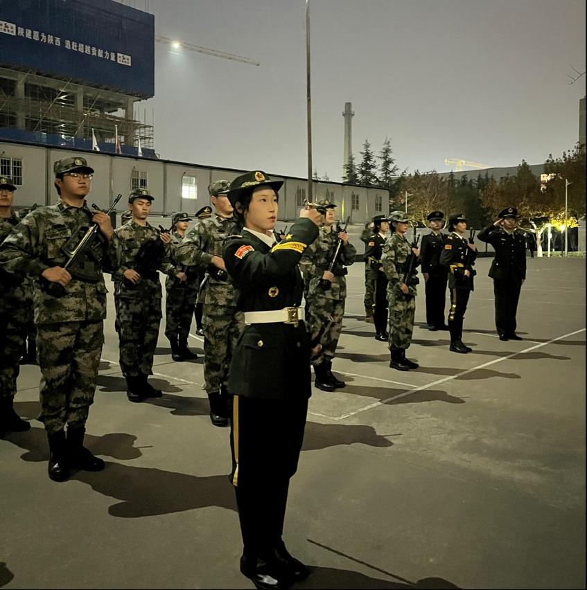 七时,全体国护队队员集合完毕,升国旗仪式正式开始,队员们身姿挺拔,步伐铿锵有力,护卫着神圣的国旗。伴着庄严的国歌声,护旗手在一声“向国旗敬礼”将那一抹中国红飘扬而起,在场所有人肃然伫立,向国旗行注目礼。