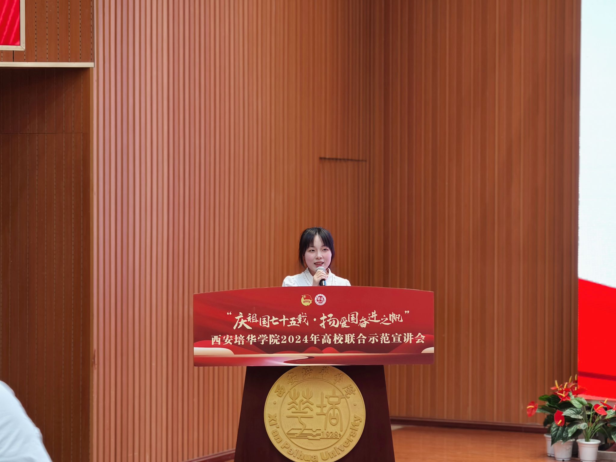 为庆祝新中国成立75周年,深入学习贯彻党的二十届三中全会精神,进一步激发广大青年的爱国热情,激励当代青年传承红色基因,勇担时代重任,12月5日,我校“城市之光”学生宣讲团受邀前往西安培华学院参与“庆祖国七十五载·扬爱国奋进之帆”高校联合示范宣讲会。据悉,参与本次活动的高校还有西北大学、长安大学、陕西科技大学、西安培华学院。