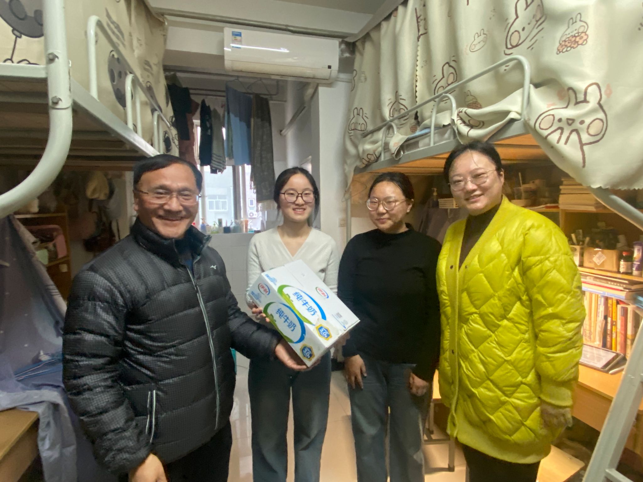 寒冬融暖意,温情润心田。临近2025年全国硕士研究生招生考试,为缓解考研学生的备考压力,坚定备考信心,传递关爱温暖。12月17日经济与金融学院副院长杨健全、学生工作负责人廉宇婷、辅导员杨静怡、张进深入考研学生宿舍,送去温暖与关怀,为同学们加油鼓劲。