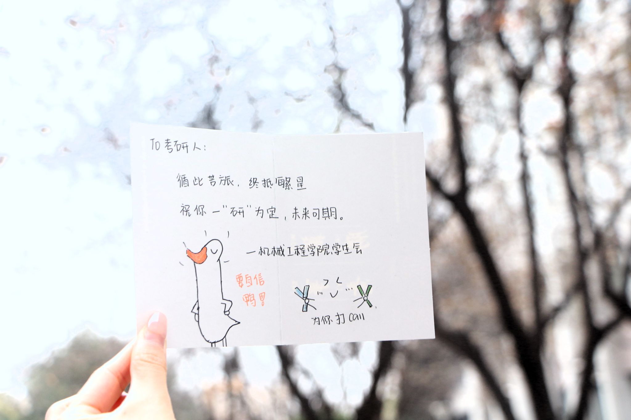 为了确保此次活动顺利开展,机械工程学院提前进行了精心的准备工作。早在活动前数周,学院就发起了明信片内容征集活动,号召全院师生积极参与,为考研学子送上最温暖人心的话语,师生们纷纷响应,踊跃投稿,每一条话语都饱含着对考研学子的深情厚谊和殷切期望。