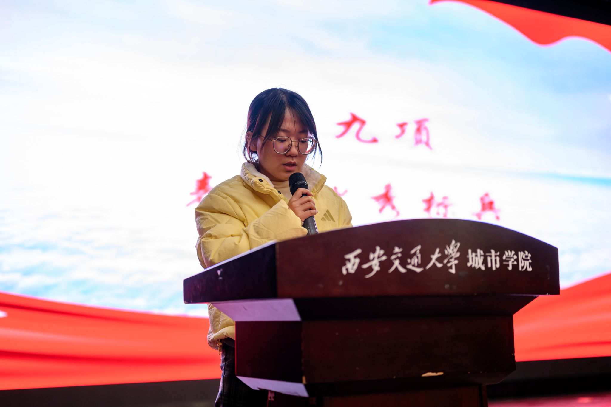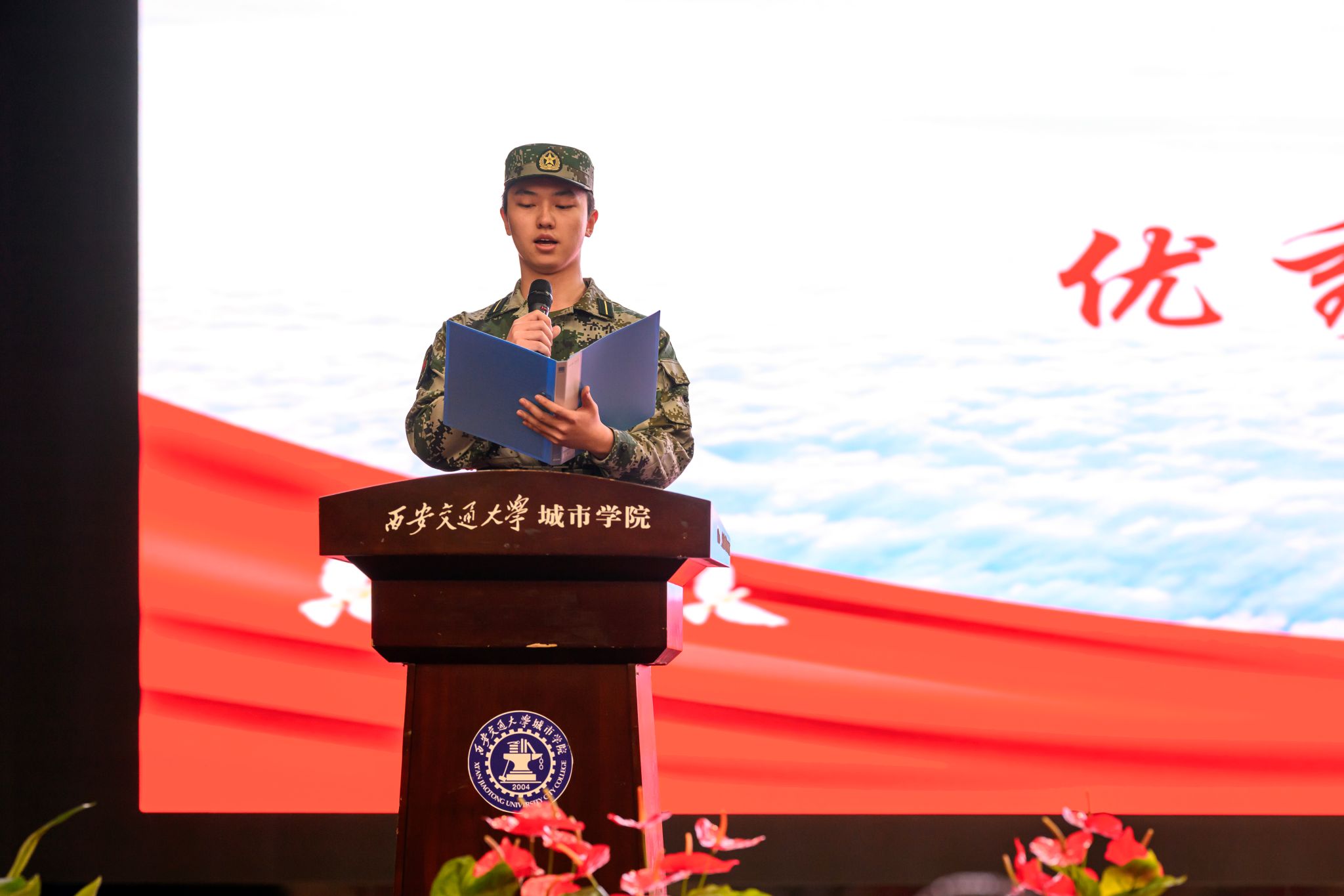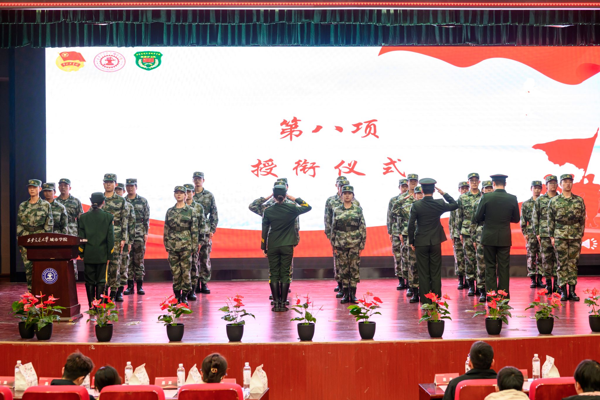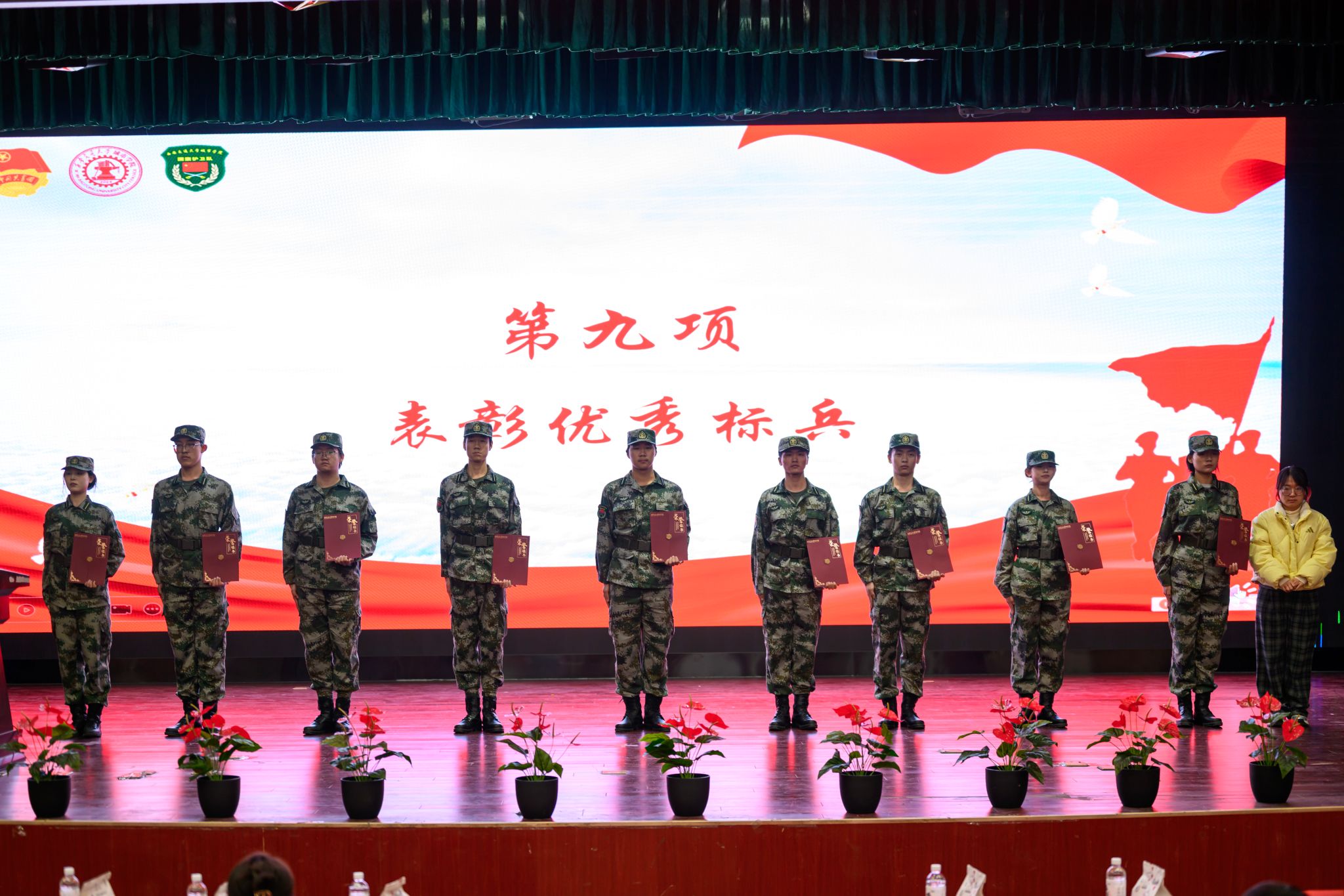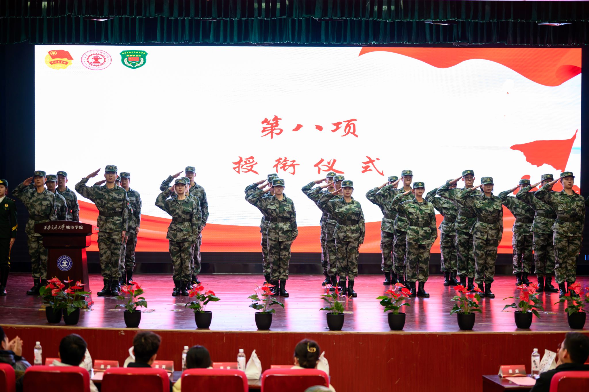 国旗护卫队队长雷智斌宣读24级新队员名单并为新队员授衔。校团委老师高荣宣读表彰决定并为优秀队员、优秀骨干颁发了荣誉证书。优秀队员徐峻森同学代表发言。接着,第八届队长雷智斌汇报了工作计划,他满心热切地展望国护的未来。在庄严的新队员宣誓中,大会进入尾声。
