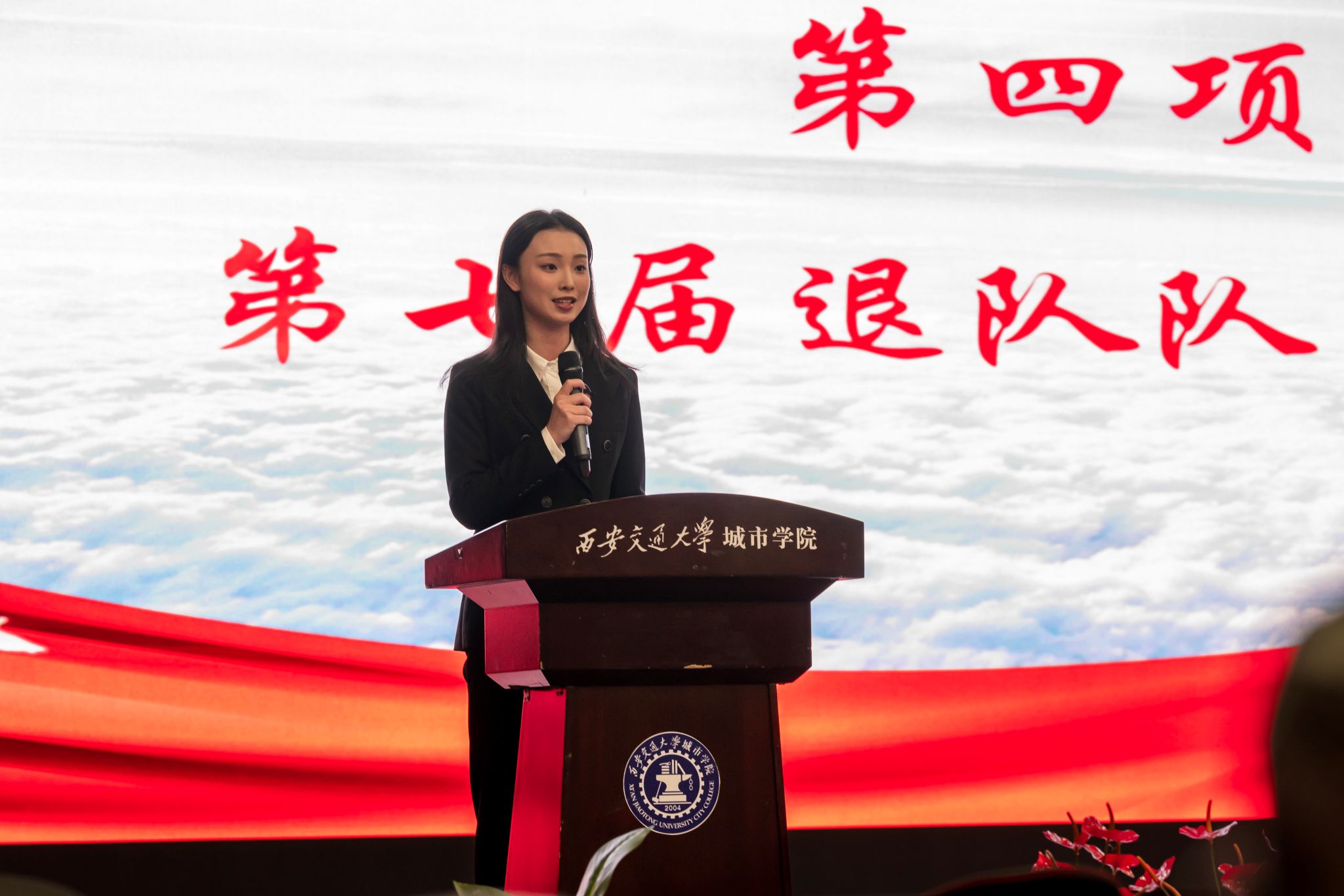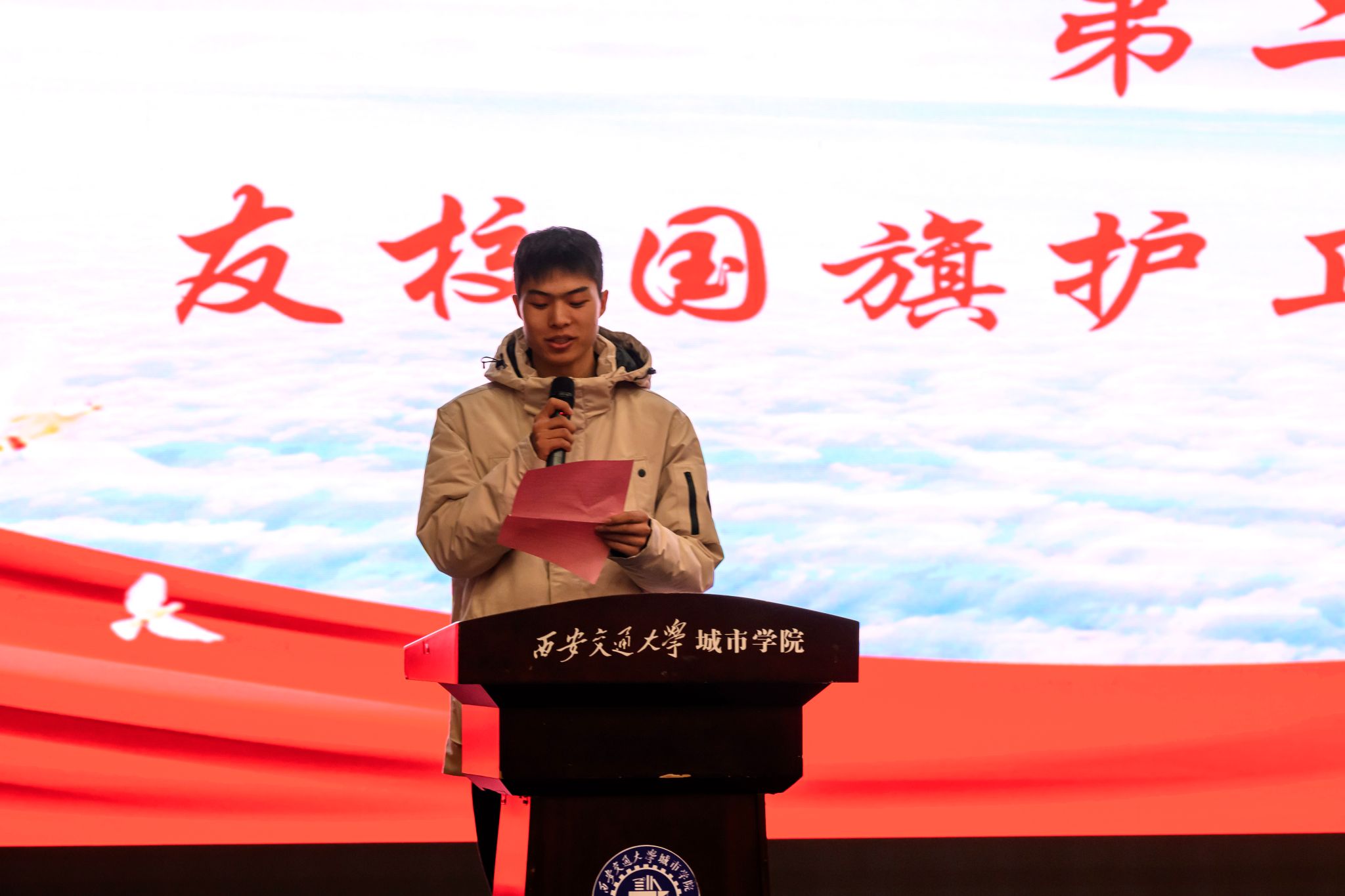 大会开始前,大家共同观看了来自20多所兄弟院校的祝福视频及国旗护卫队的宣传视频。伴随着慷慨激昂的国歌声,大会拉开了帷幕。会议第二项由陕西师范大学国旗护卫队代表致贺词,21级国旗护卫队副队长唐铗锐进行工作总结并宣读退队队员名单。他表示,在过去的一年中,国旗护卫队全体成员团结一致,圆满完成了各项任务。在今后的工作中,国护队将继续努力,为维护国旗的尊严和形象贡献力量。