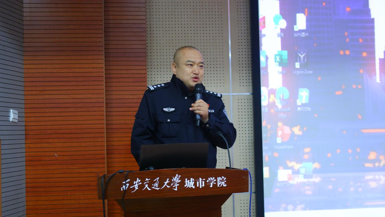 12月24日,yl7703永利官网举办第三十期思政论坛。西安市公安局经开分局尚稷路派出所社区服务队队长黄亮,经开大队草滩中队副中队长李涛等四位干警受邀参加。学校行政人事部部长姬志国,学生工作处处长辛红伟,保卫处处长李凡昊,党委工作部副部长、团委书记茹静,学生工作处副处长姚敏、张福全,保卫处治安管理科科长冯西军,各二级学院学生工作负责人及全体辅导员老师到场参加。