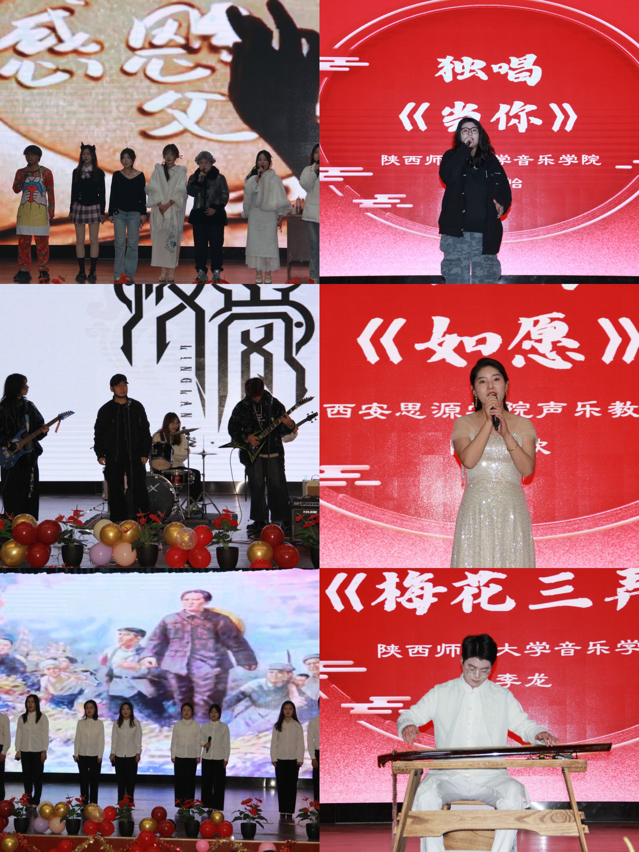 这是一场青春与梦想交织的狂欢,流光璀璨,精彩纷呈,歌舞中展现着同学们的才艺与活力。不仅有青春律动的《青春健美操》,凌琅乐队的表演《山海》,有专业音乐家鲜于越歌老师的《青春舞曲》,陈欣欣老师的《如愿》等专业演唱表演,独特的乐器演奏表演,还有感动人心的情景剧《为爱留住时光》及艺术学院优秀学生代表朗诵的《写给未来的你》。节目中的歌声如同天籁,唤醒了每个人内心深处的青春记忆,独特的乐器演奏表演,以其精湛的技艺和悠扬旋律,为晚会增添了一抹别样的艺术风采;感动人心的情景剧让观众在欢笑与泪水中感受到了爱的力量。