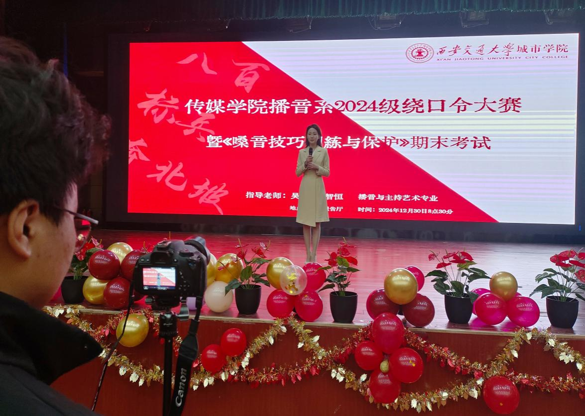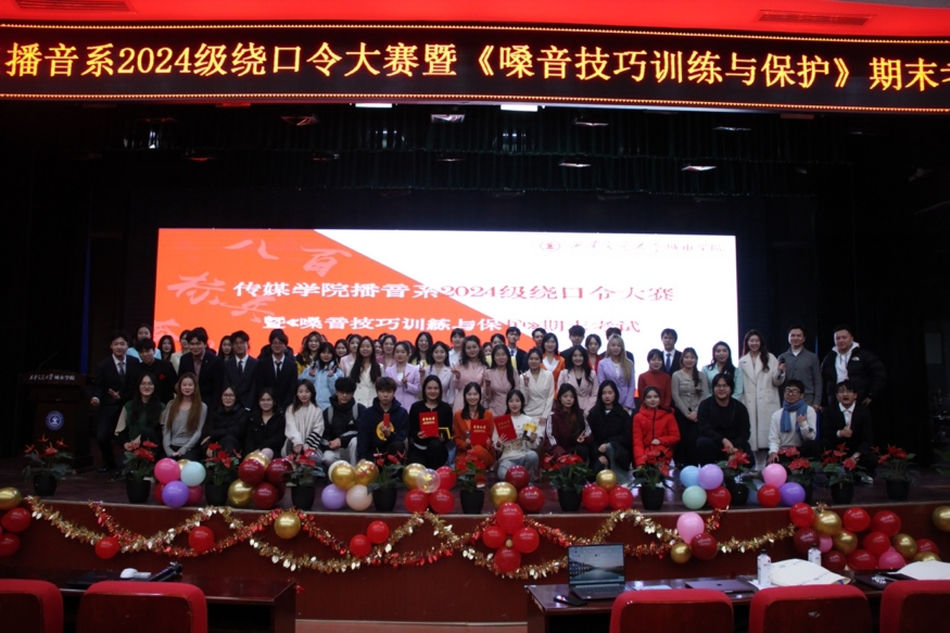 为展示学生专业能力,检验教学成果。近日,传媒学院于教二报告厅举办了绕口令大赛。播音系副主任高宇、专业教师雷雨、吴璇、郭智恒出席并担任评委。播音系2024级全体学生参赛。