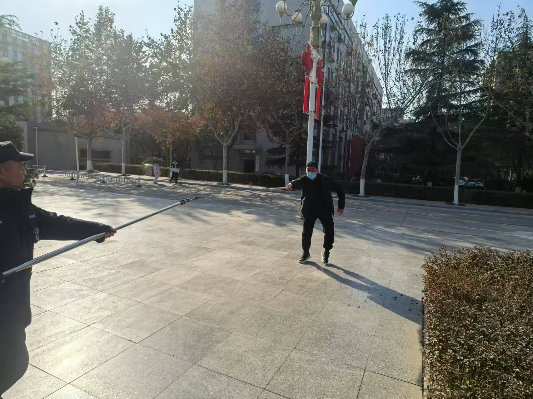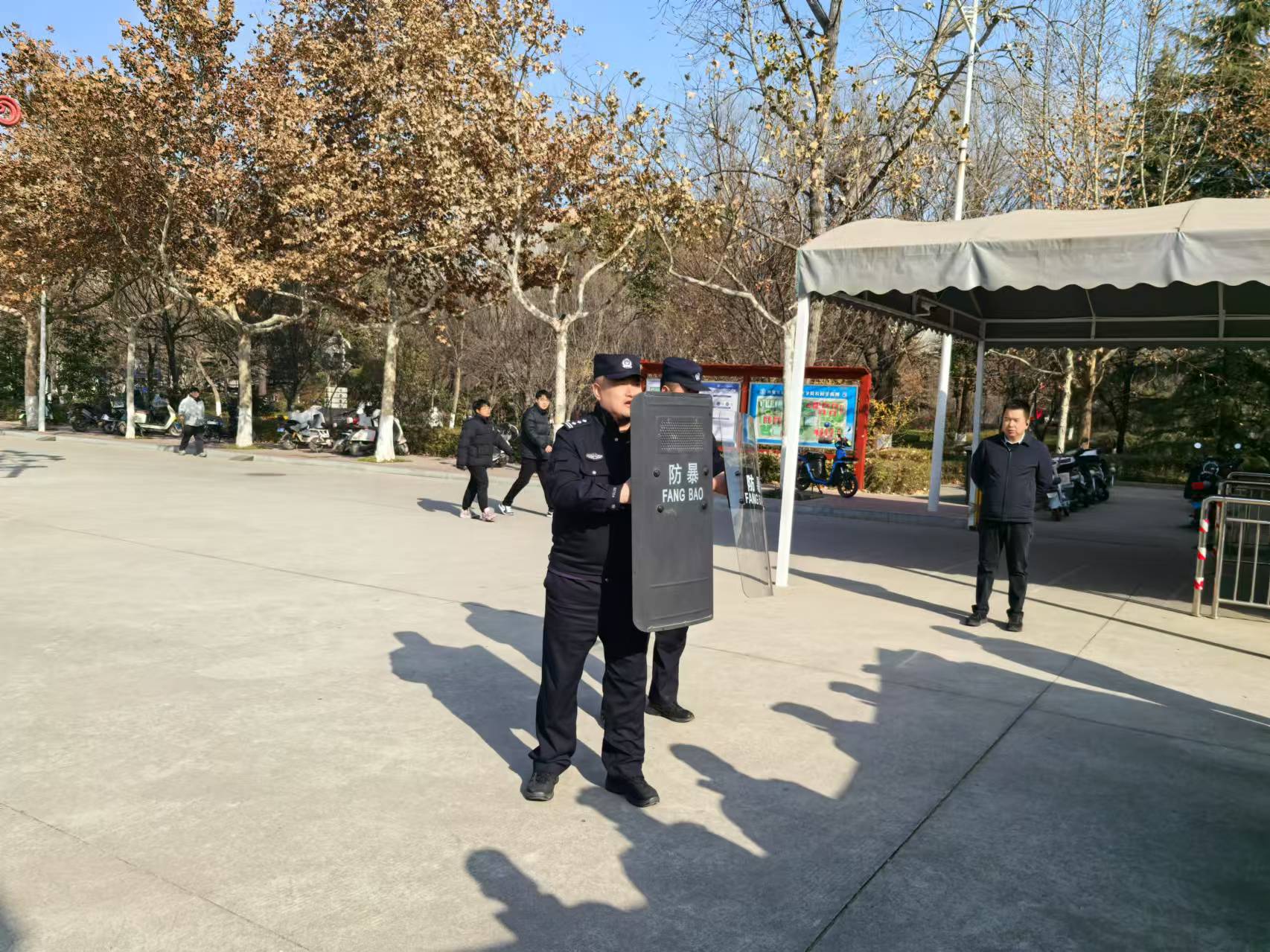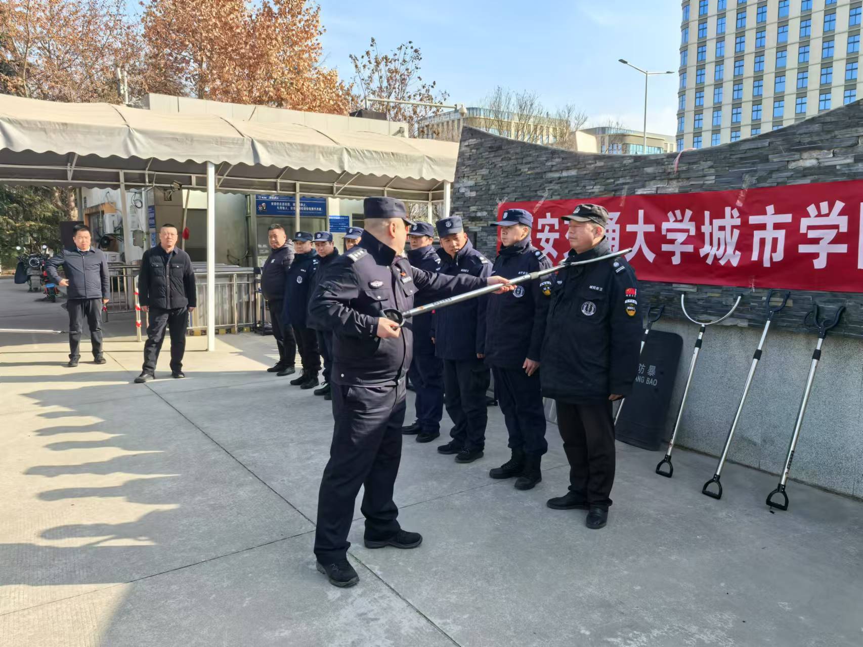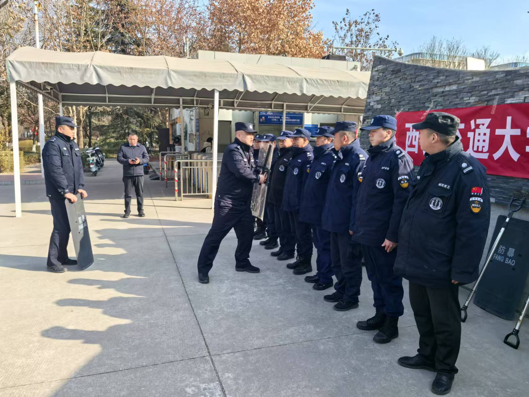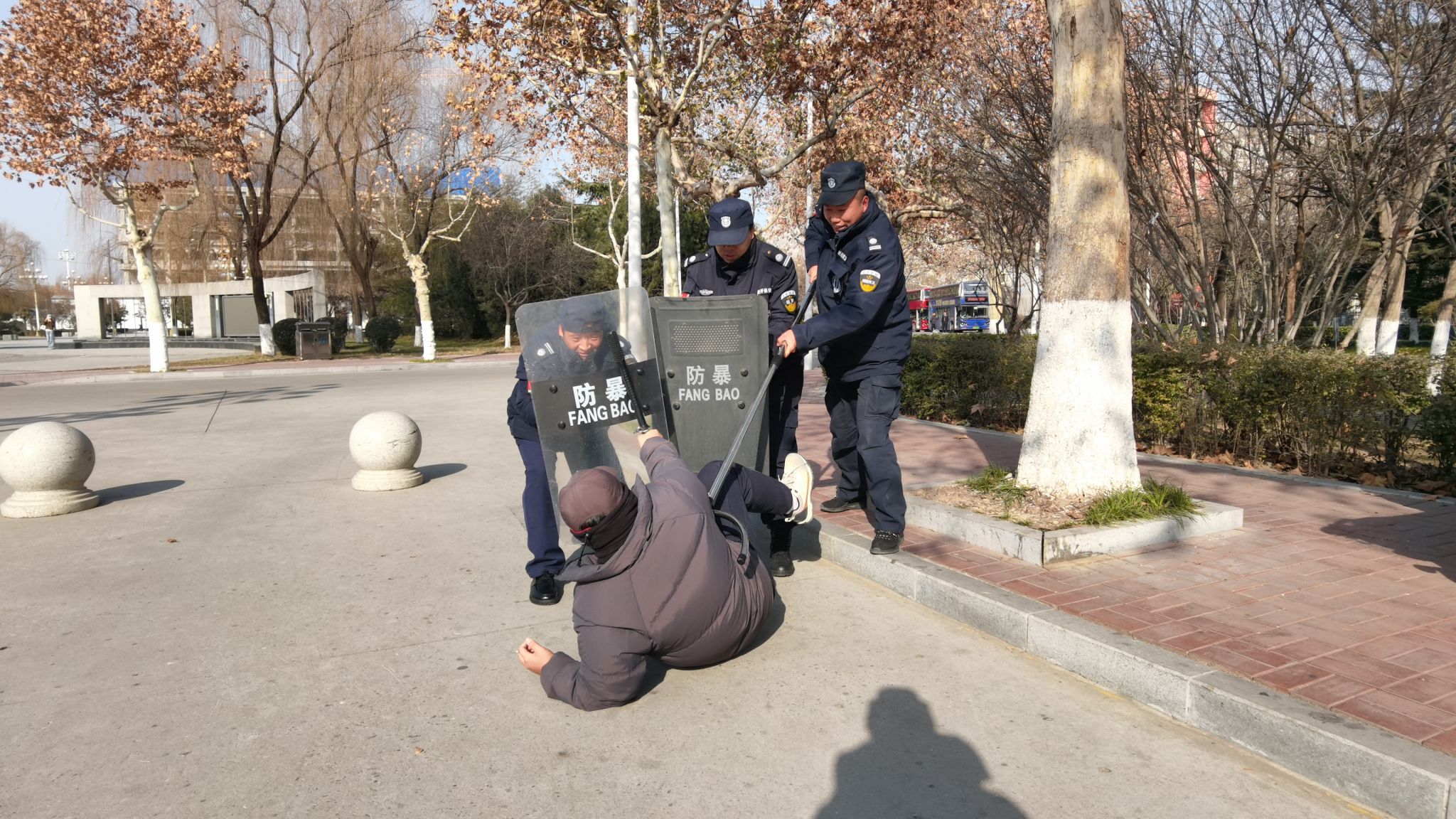为全面提升学校应对暴力侵害事件的能力,切实保障师生生命财产安全,进一步强化学校安保人员的防暴意识与防范能力,保卫处于1月14日开展了一场紧张有序、高效协同的防暴应急演练活动。活动邀请公安经开分局国保大队高爱红警督、尚稷路派出所社区服务队队长黄亮警督提供专业指导。