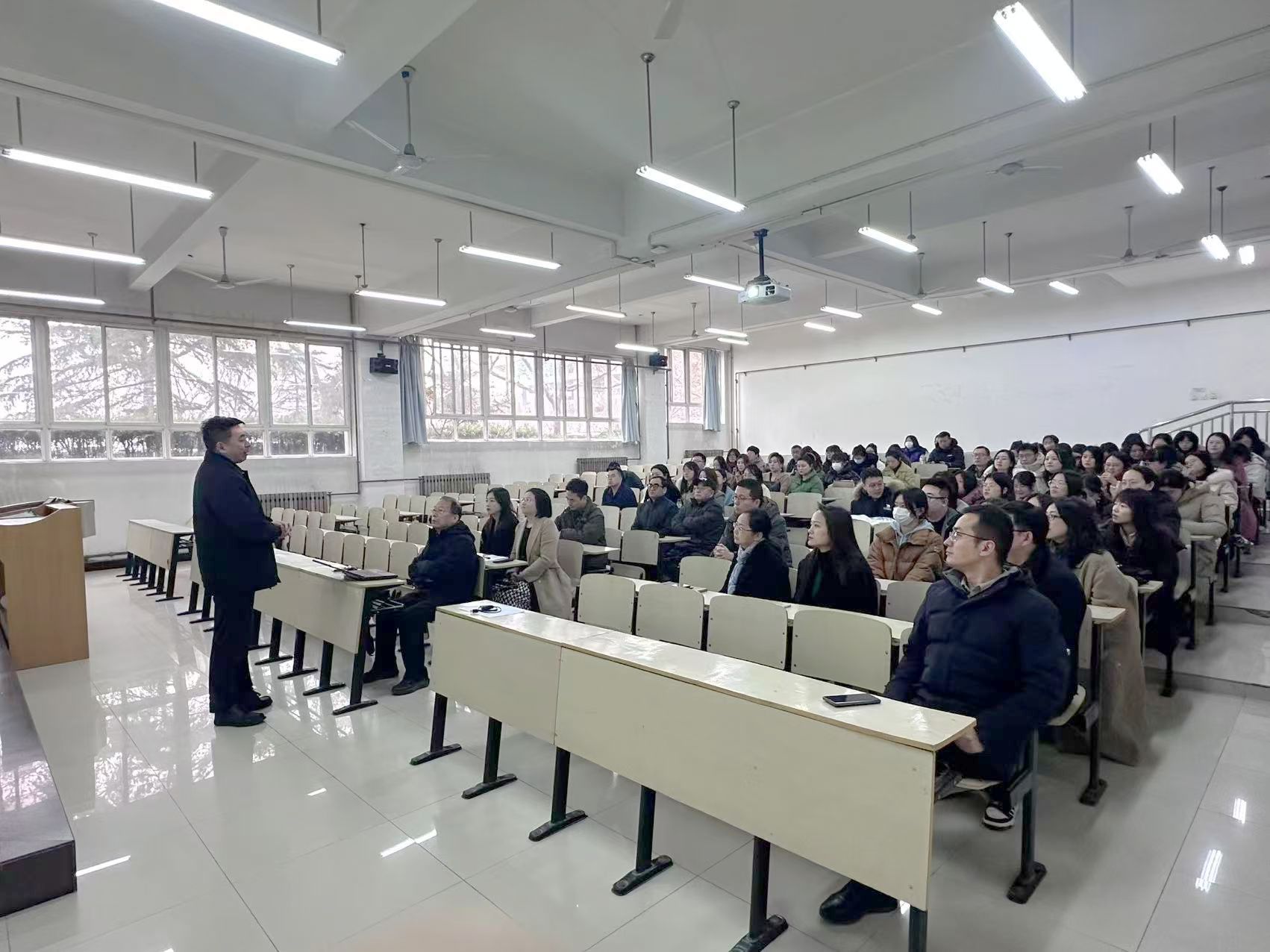 2月20日上午,传媒与外国语学院在教学楼E100召开新学期工作动员会。副校长朱旭、校长助理姬志国、院长李明德及全院教职工参加会议。