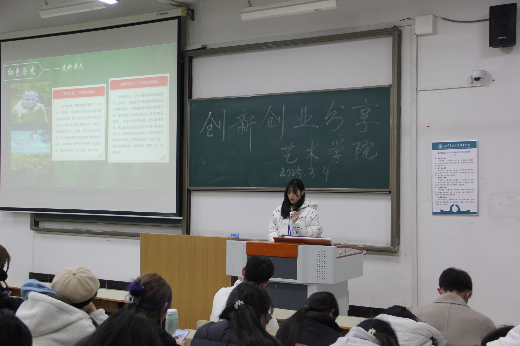 为进一步激发艺术学院学生创新创业的热情,提高大学生创新、创意、创造、创业的意识和能力,增加同学们对创新创业的兴趣和实践能力,展示艺术领域的创新成果,艺术学院于3月4日晚在E400举办“创新创业”大赛分享会,参加本次会议的有艺术学院创新创业负责人张小欢、艺术学院创新创业团队成员及大一同学。