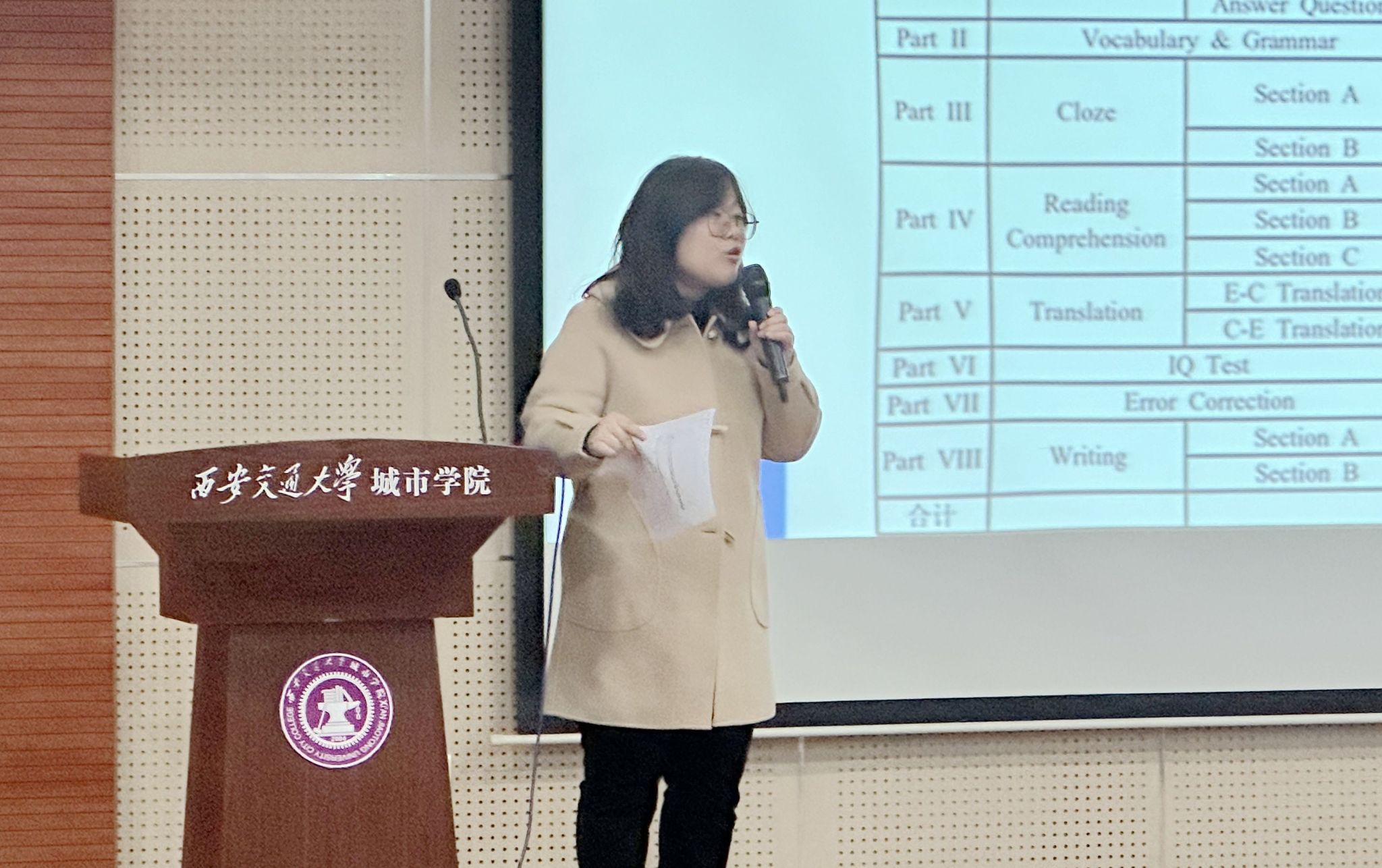 王姣进行了总结发言,她肯定了每一位积极报名参加学科竞赛的同学们,敢于走出舒适圈在挑战中成长。她强调,英语学习重在积累,要在大一年级就打好基础,积极参加学科竞赛可以在备考中巩固基础知识,提高应用能力。