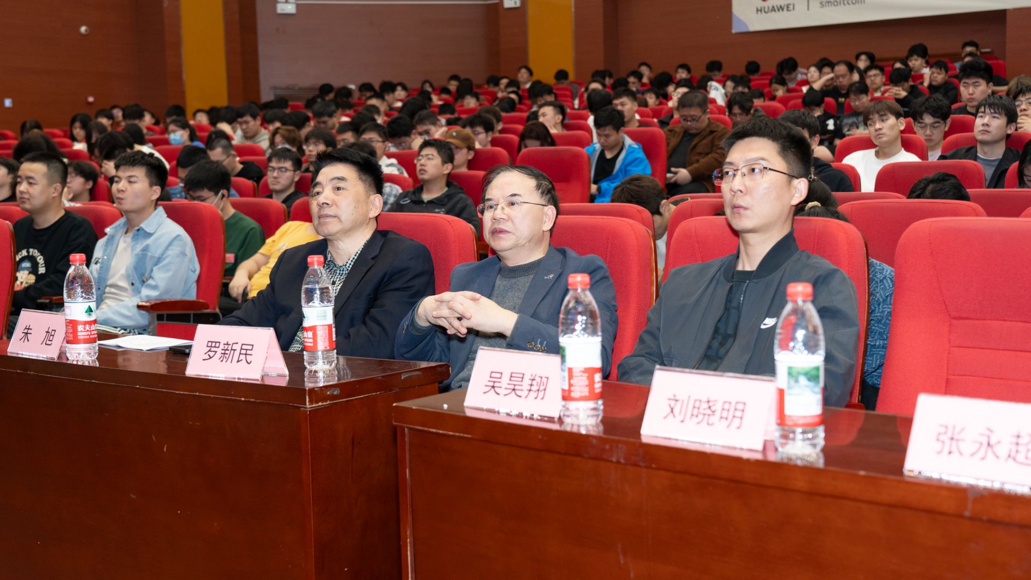 宣讲会在电气信息学院副院长刘晓明的致辞中拉开帷幕。她表示,学校将联合企业建立“人才共育、过程共管、成果共享”的协同机制,依托智能制造现代产业学院建设,动态优化专业课程体系,希望同学们在真实产业场景中淬炼本领。她鼓励同学们积极把握此次校企合作带来的宝贵机遇,让青春在推进新型工业化的征程上绽放绚丽之花。 中国终端服务培训主管冯邦成以“心有多大,舞台就有多大;天高任鸟飞,海阔任鱼游”为主题开启企业宣讲。他讲解了企业的投资情况,展现了企业的实力与发展潜力并邀请同学们加入企业,共创美好未来。陕西终端业务部服务主管赵中一通过多项数据、研发排名等,深入分析公司的经营情况、业务构成,包括消费者、运营商、企业等主要业务板块。中国终端服务部HRBP赵旭辉介绍了校企合作项目的背景以及华为终端体系。他鼓励同学们积极投身到相关领域的学习与实践中。中国终端服务部主管陆琳对项目课程体系进行了讲解,包括职务体系、职业晋升通道、基于全国应届生的岗位发展薪资等内容,并鼓励同学们积极参与校企合作项目。