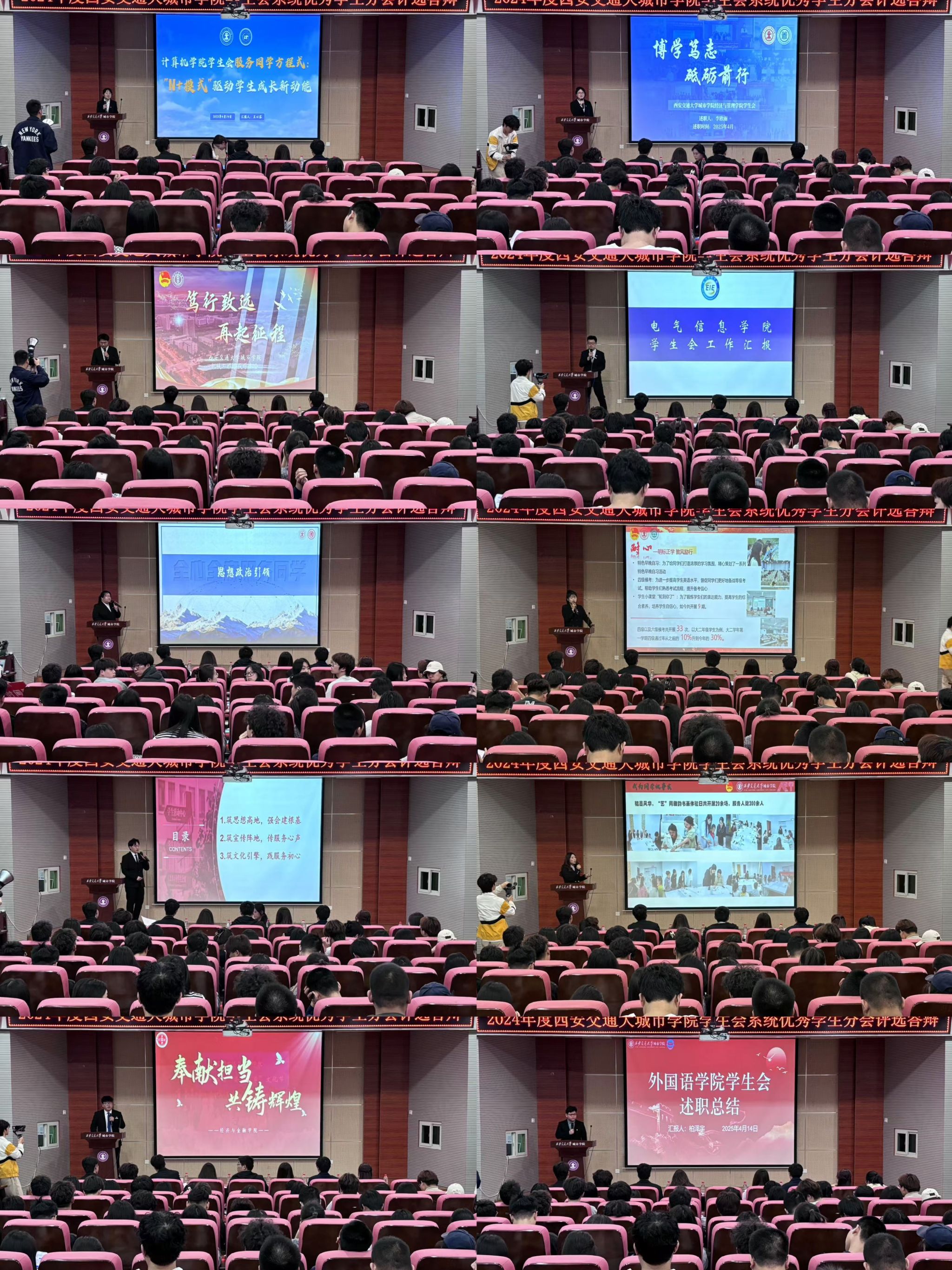 各学院学生会代表依次登台,围绕“组织建设”“思想引领”“校园文化建设”“我为同学做实事”等主题,以详实数据与生动案例展现年度工作成果。答辩环节中,各分会立足学院特色,诠释了“全心全意为同学服务”的宗旨,充分发挥桥梁纽带作用,在服务青年、凝聚青年、引领青年方面交出亮眼答卷。