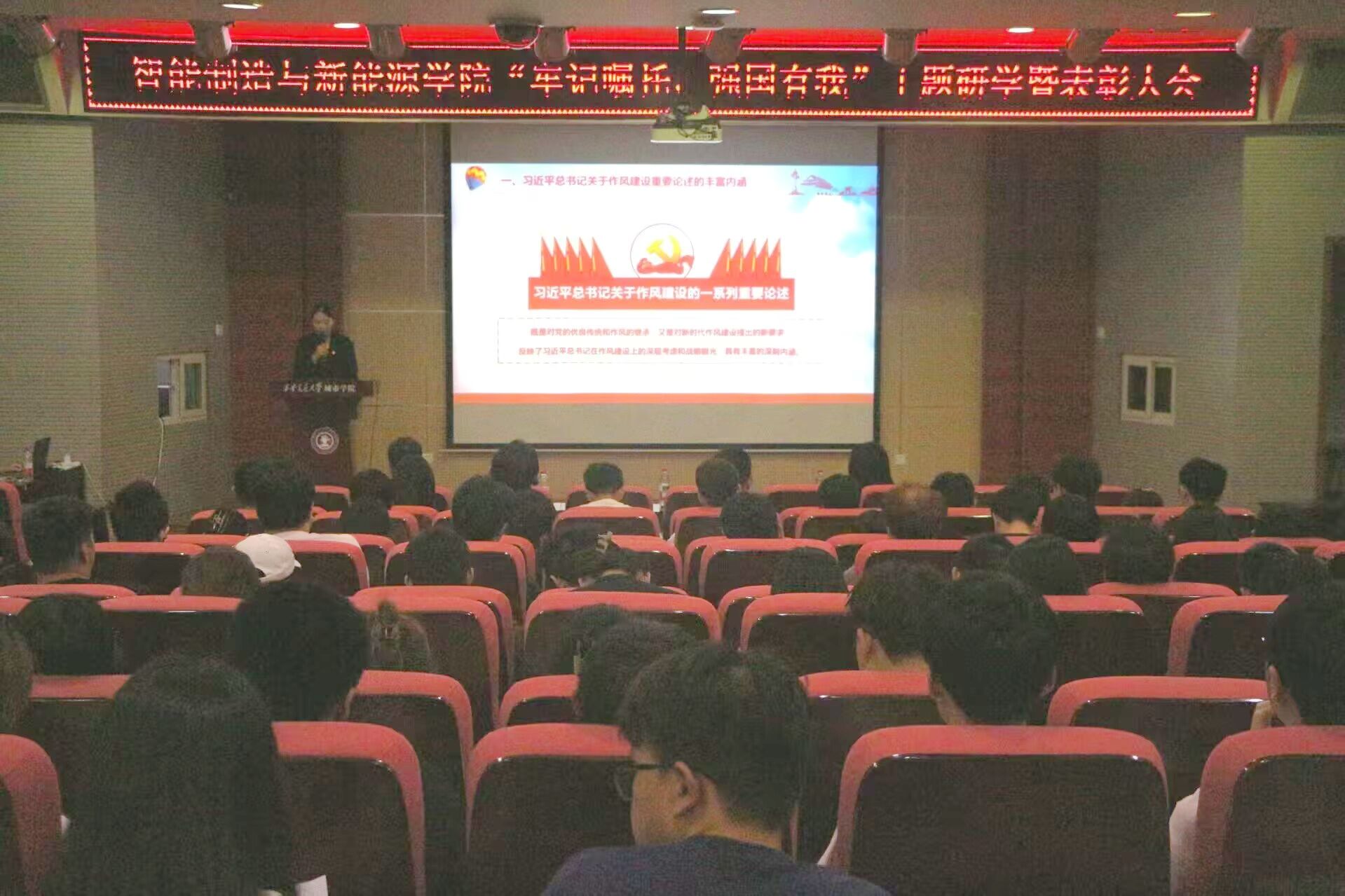 为了筑牢大学生理想信念根基,4月15日,智能制造与新能源学院学生党支部于F100会议室开展“牢记嘱托,强国有我”主题研学暨表彰大会。大会将理论与实践相结合,以榜样力量激发学生对国家发展战略的深刻理解。学生党支部书记王丽丽、组织委员史晓薇、宣传委员童治杰、辅导员王令、全体党员及42期入党积极分子出席本次会议。本次大会由朱颜汐同学主持。