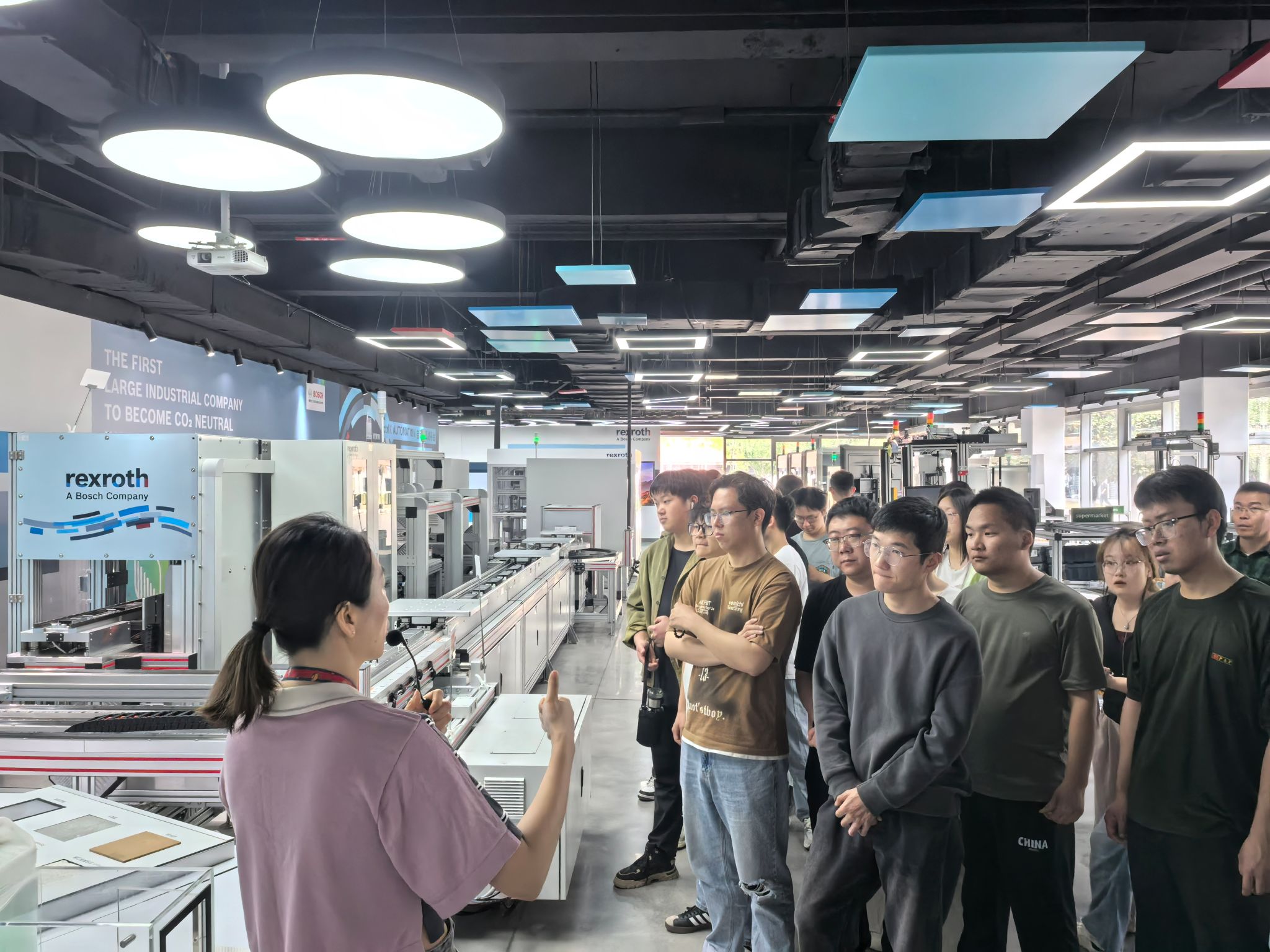 另一组同学走进博世力士乐公司,在企业工作人员的带领下,首先参观了产品展示厅。琳琅满目的先进产品令人目不暇接,从工业自动化设备到智能传动系统,博世力士乐在多个领域的创新成果让同学们深刻感受到科技对现代工业发展的巨大推动作用。
