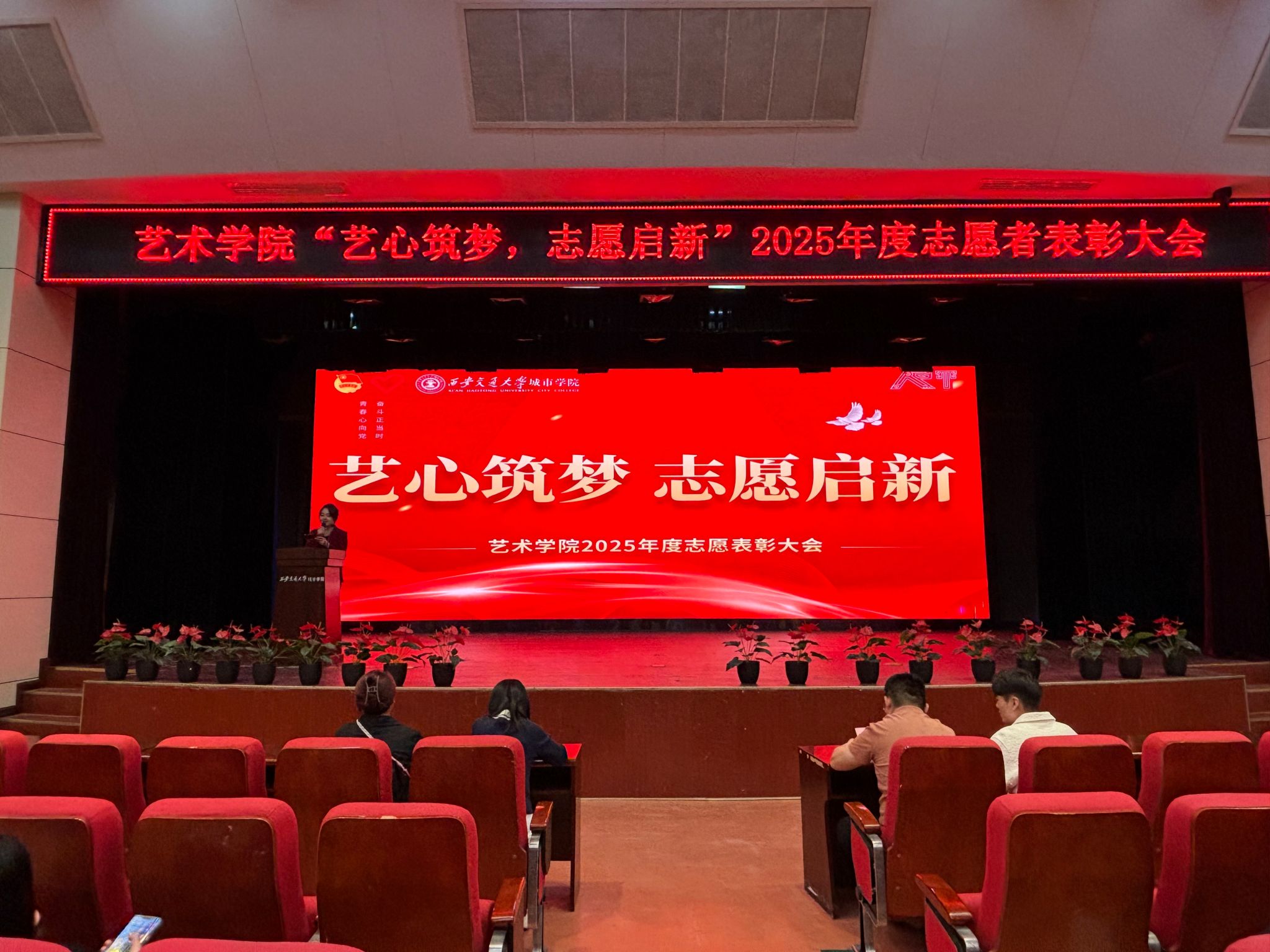 大会在共青团团歌中拉开帷幕,院长助理李成发表致辞,他充分肯定了艺术学院志愿团队在校园服务、社区共建、文化艺术推广等领域作出的突出贡献。他提到:“志愿者们以专业所长服务社会,用艺术传递温暖,展现了新时代青年的责任与担当。”
