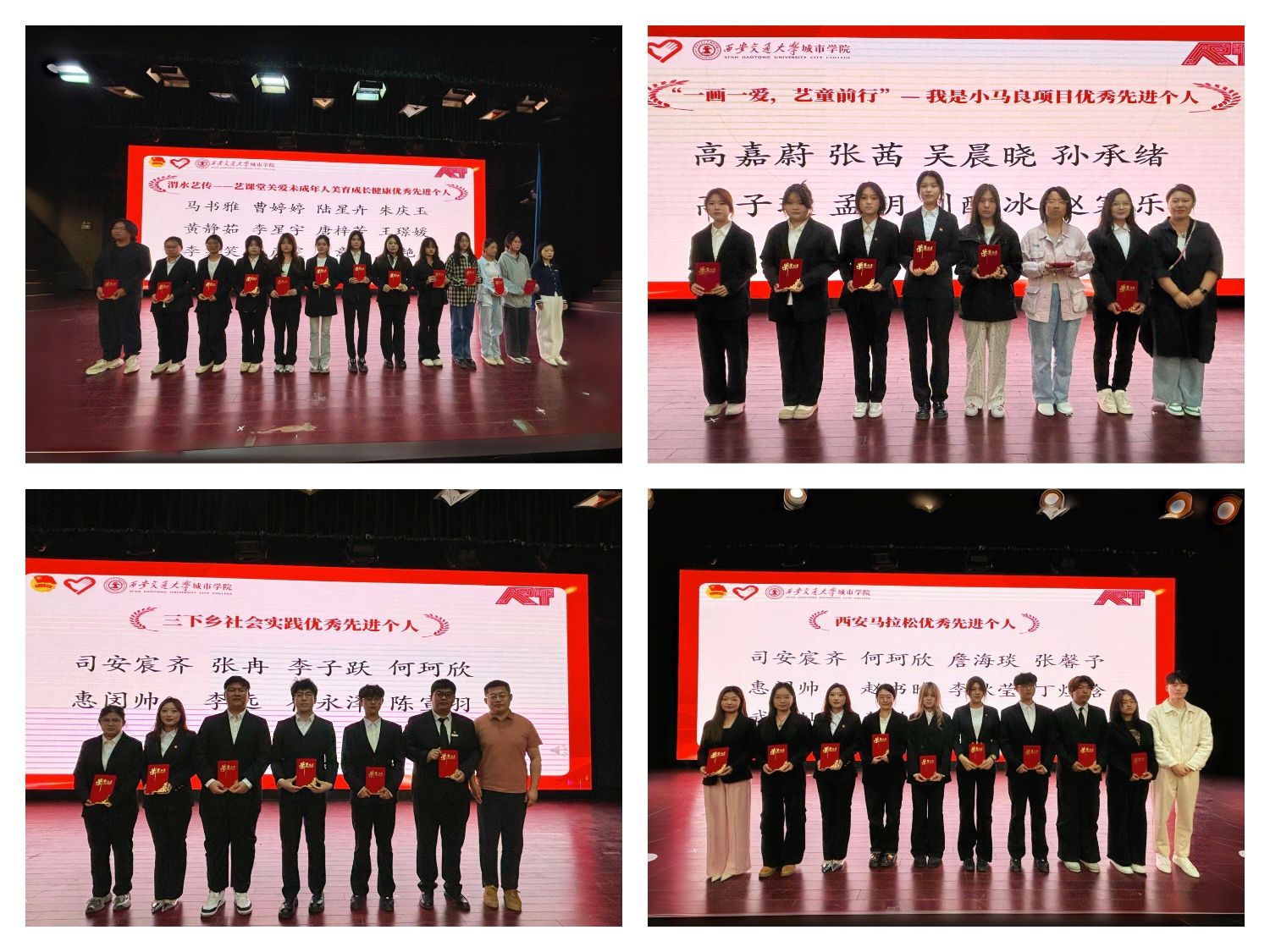 老师们分别为“一画一爱,‘艺’童前行——我是小马良”优秀志愿项目先进个人、渭水艺传——艺课堂关爱未成年人美育成长健康优秀先进个人、西安马拉松优秀先进个人、返家乡社会实践、三下乡社会实践、优秀志愿者进行颁奖。