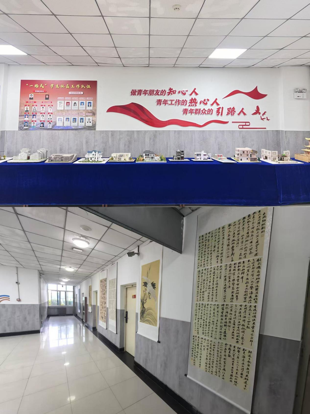 此次捐赠的模型作品涵盖环境设计、中国画、书法等领域,均由学生党员及入党积极分子在专业教师指导下完成,兼具创新性与艺术性;字画作品则以山水、花鸟为主题,展现中华优秀传统文化魅力。这些作品不仅为社区增添了人文气息,更通过“党员创作+社区展示”的形式,打造了流动的“红色文化课堂”。持续发挥学生党支部的先锋模范作用,让社区成为贴近学生、服务学生、引领学生的文化阵地。