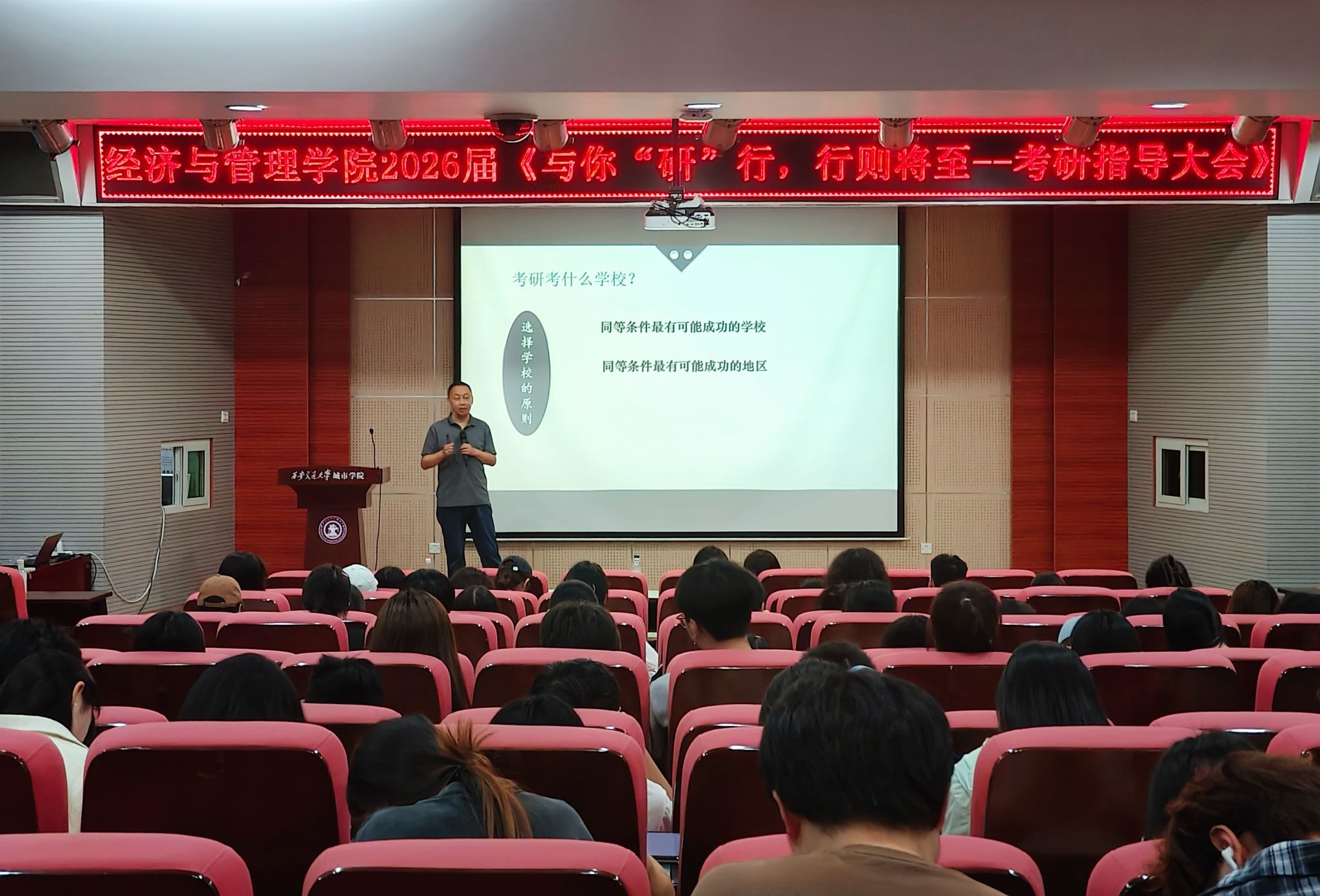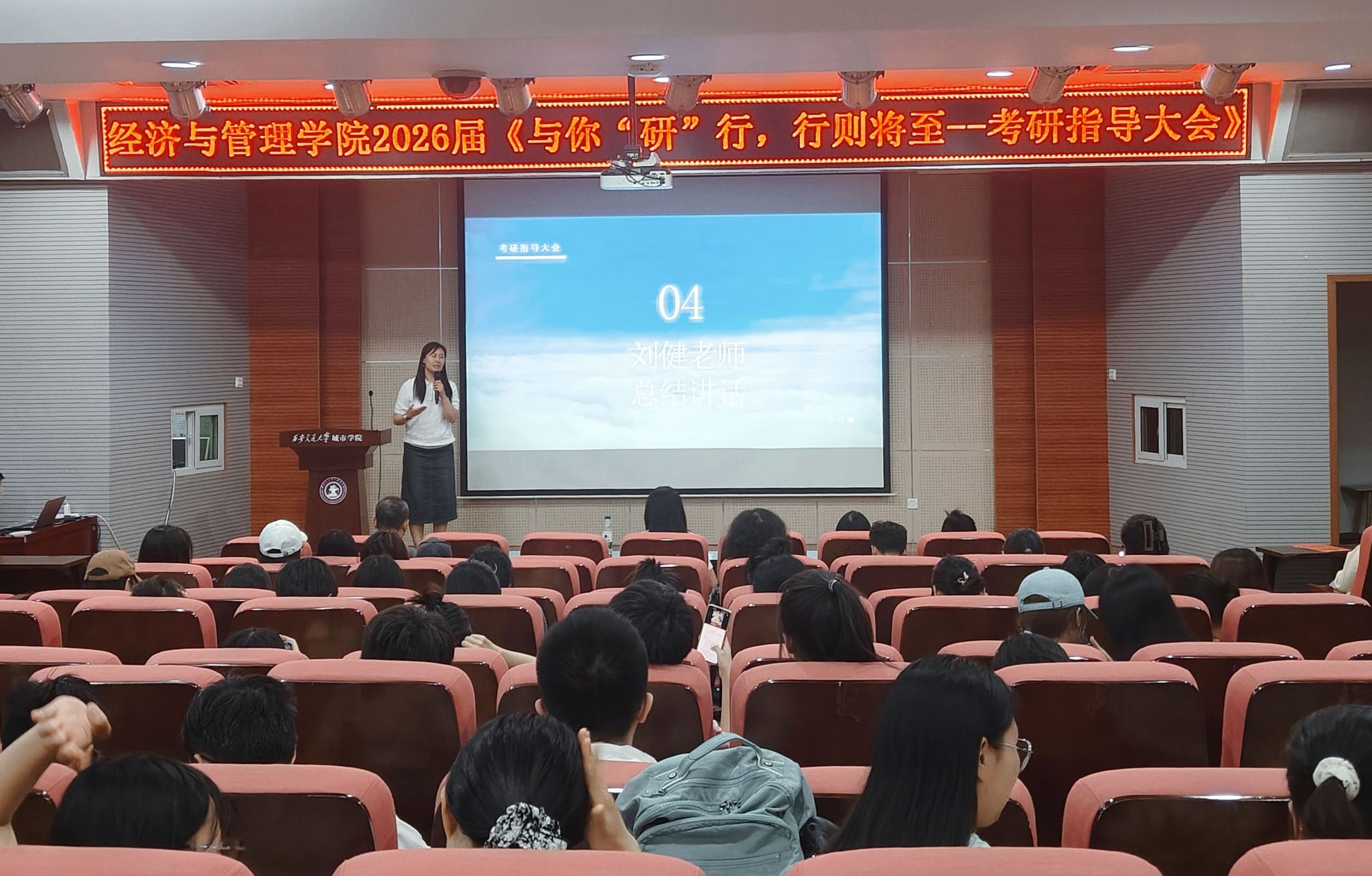 为帮助2026届学生明确考研方向,掌握科学的备考方法,经济与管理学院于5月15日在F100教室举办“与你‘研’行,行则将至”专题考研指导大会。经济与管理学院院长助理廉宇婷、刘健,教师韩延庆、拓桦真出席会议。
