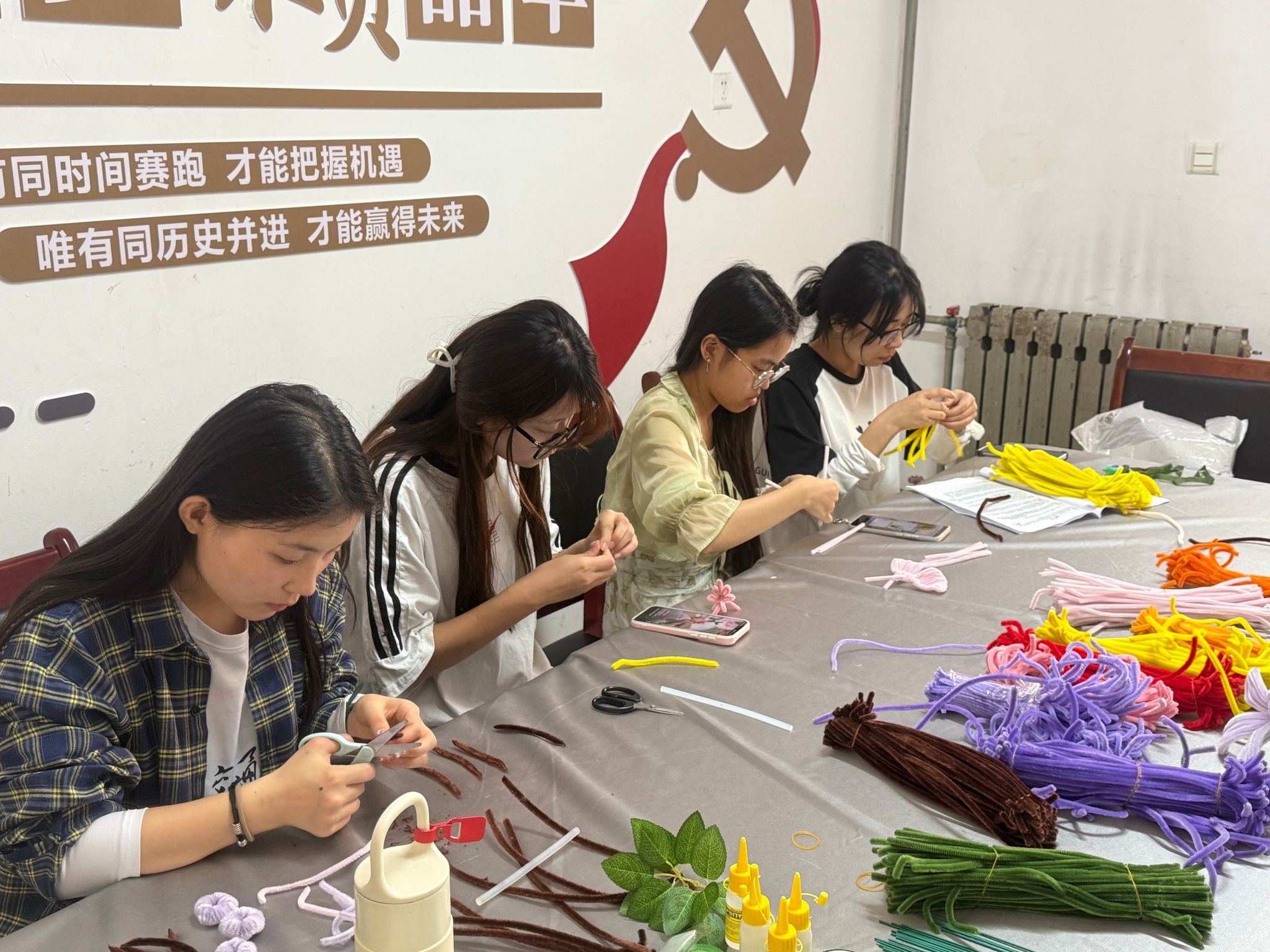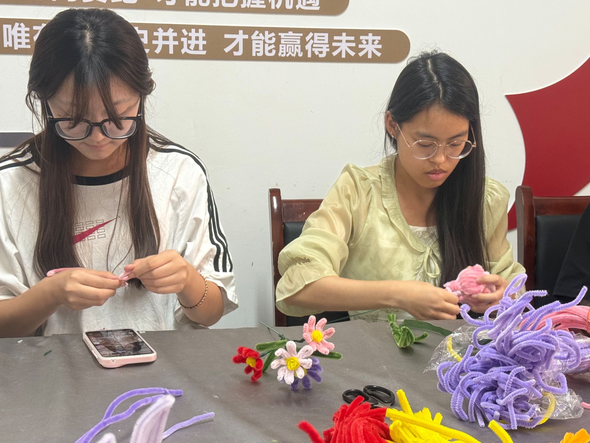 5月19日,在心育专员张进的指导下,在三号楼143开展了“扭出繁花、心灵绽放”扭扭棒手工制作。五颜六色的扭扭棒激发了同学们的创作热情,大家围坐在一起,时而专注地弯折、缠绕,时而热烈地交流探讨,现场气氛轻松愉悦。一根根普通的扭扭棒在同学们的巧手中变幻出各种精美的造型,在扭扭棒的创作过程中,同学们不仅体验到了手工艺术的无限乐趣,还在轻松愉快的氛围中有效缓解了学习生活的压力,更为珍贵的是,通过这次活动,同学们互相分享创作心得,增进了彼此的了解,建立了更深厚的友谊。