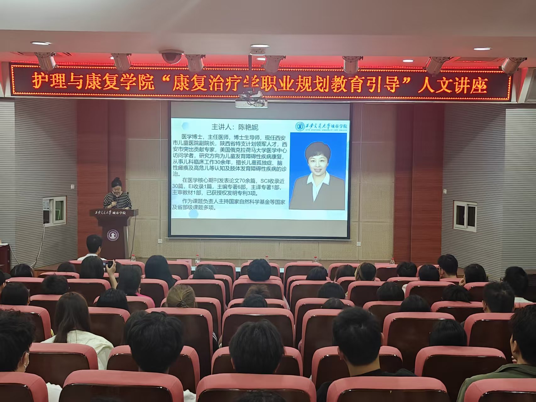 为帮助康复治疗学专业的学生更好地规划未来,明确职业目标。5 月 15 日上午,护理与康复学院在F100报告厅举办了题为“康复治疗学职业规划教育引导”讲座,本次讲座特邀西安交通大学附属儿童医院副院长、陕西省特支计划领军人才、第十三届宋庆龄儿科医学成果奖获得者陈艳妮担任主讲嘉宾,护理与康复学院22级、23级、24级康复治疗学专业全体学生参与。