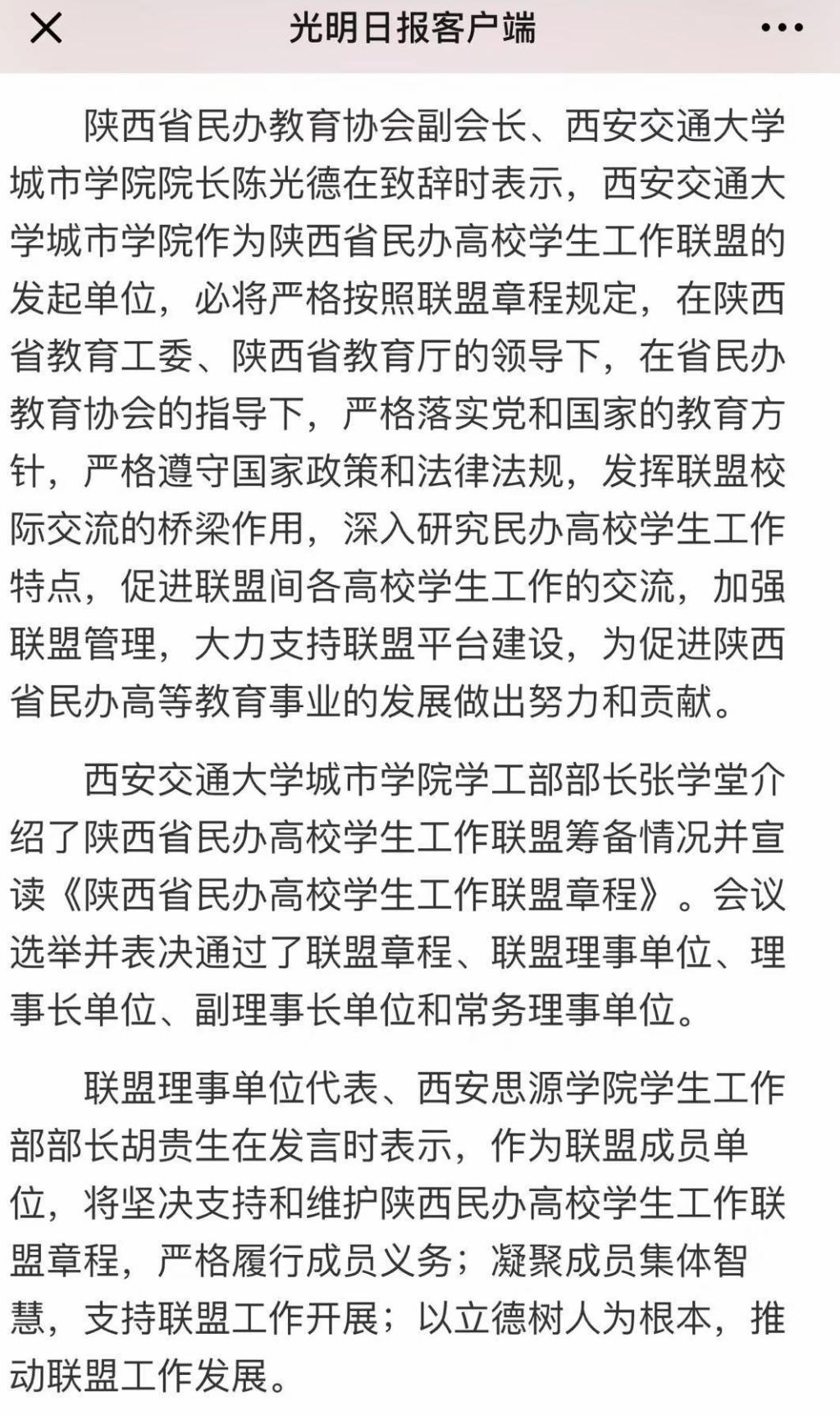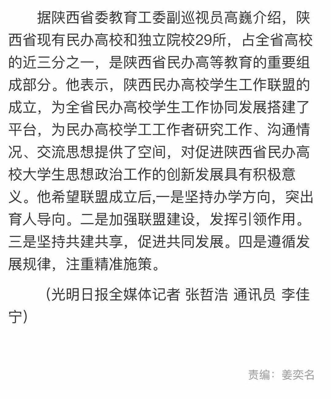 【光明日报客户端】陕西省民办高校学生工作联盟成立