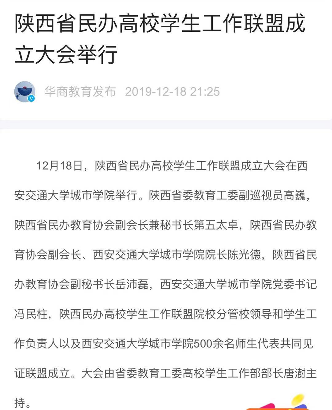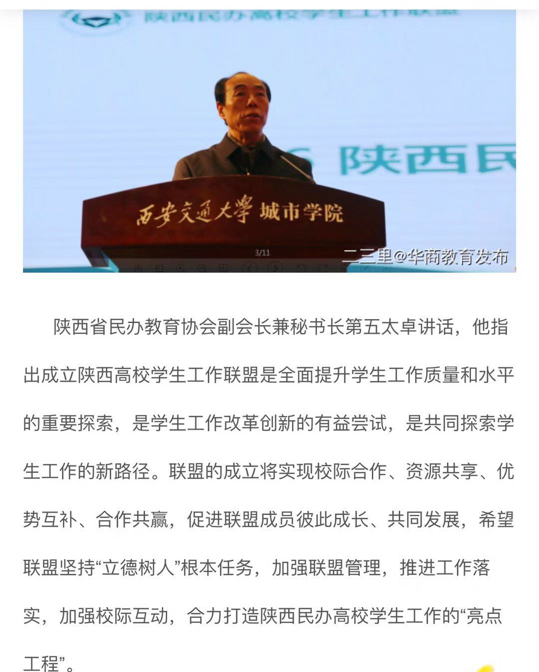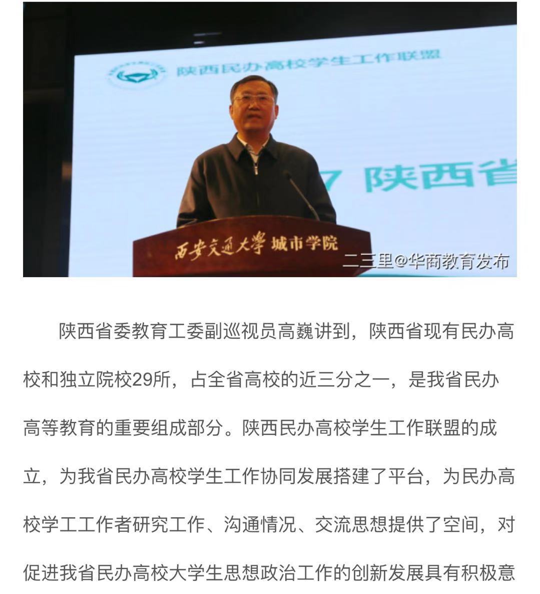 【华商教育发布】陕西省民办高校学生工作联盟成立大会举行