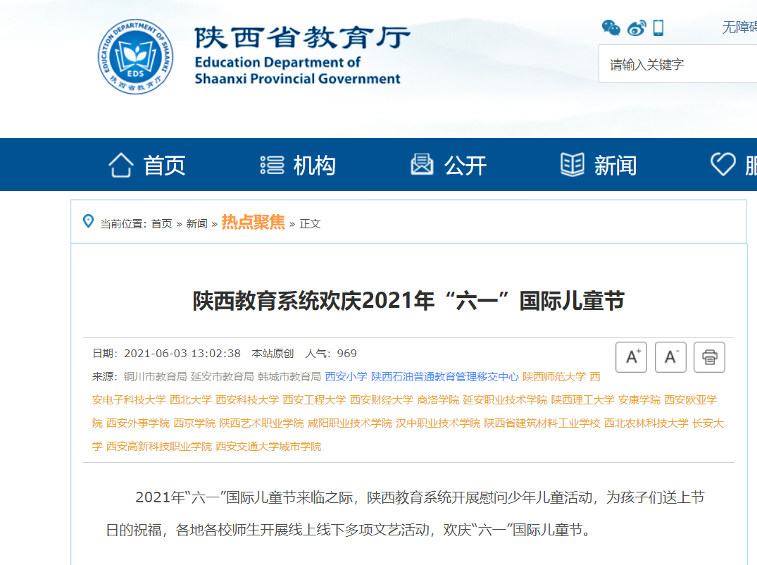 链接:陕西教育系统欢庆2021年“六一”国际儿童节_热点聚焦_新闻_陕西省教育厅 (shaanxi.gov.cn)