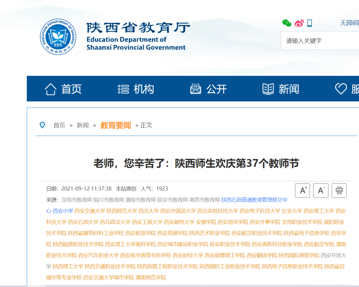 【陕西省教育厅官网】陕西师生欢庆第37个教师节