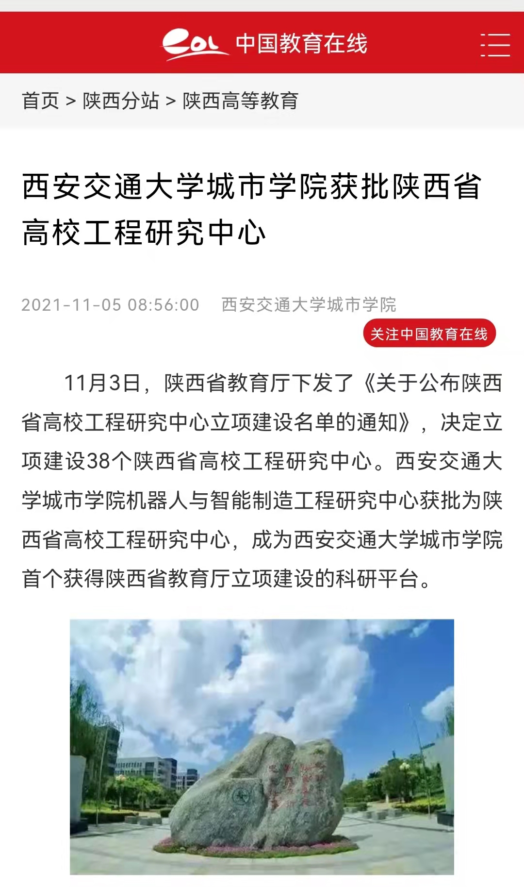 11月5日,中国教育在线报道了学院获批陕西省高校工程研究中心相关内容。具体链接如下: