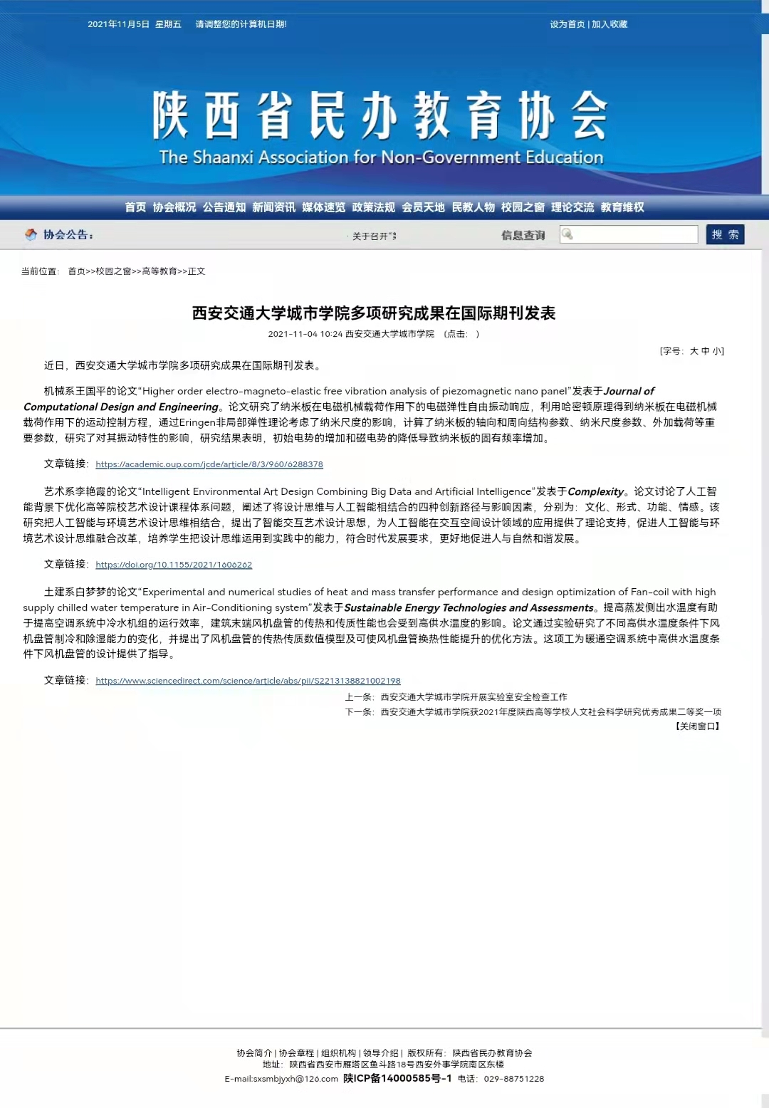 近日,陕西省民办教育协会报道了学院多项研究成果再国际期刊发表情况。具体链接及内容如下: