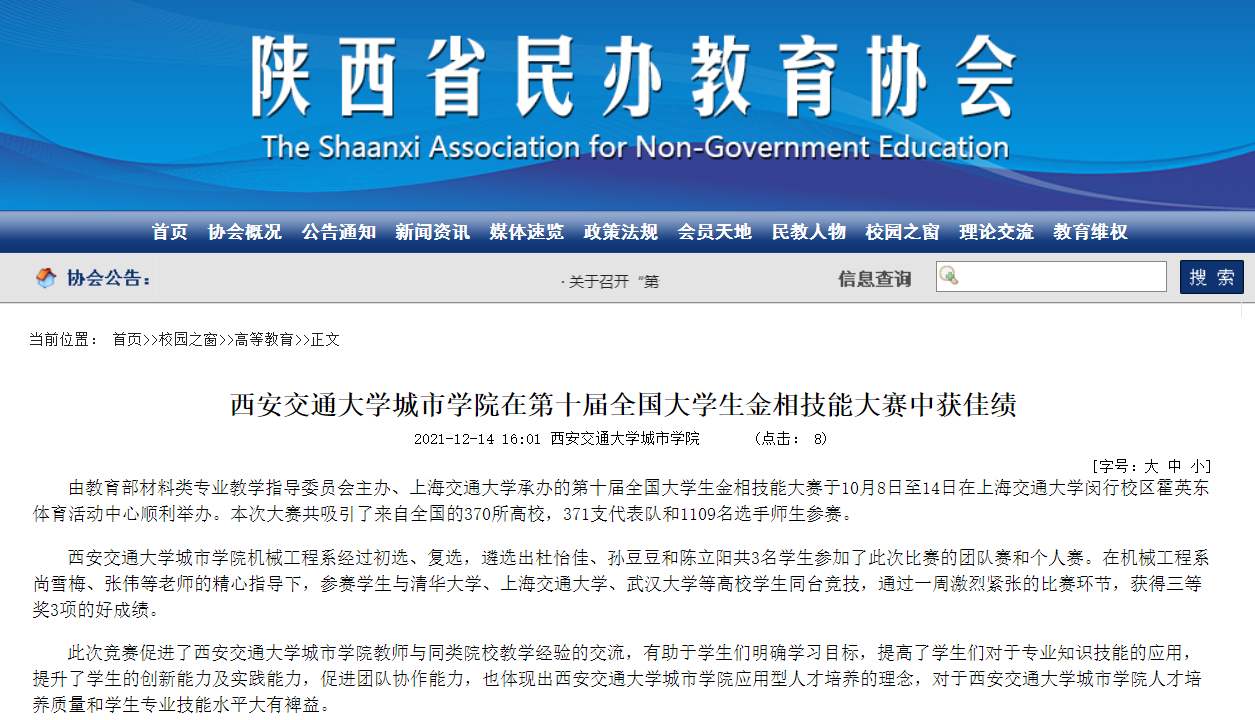 近日,陕西省民办教育协会报道了yl7703永利官网在第十届全国大学生金相技能大赛中获佳绩情况。