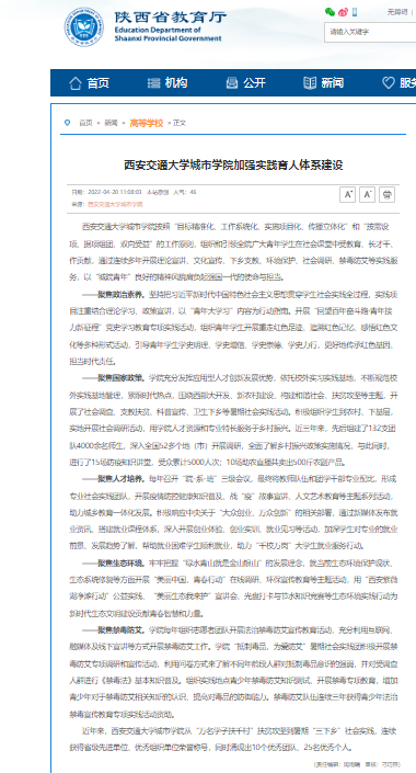 近日,陕西省教育厅官网报道了学院实践育人体系建设。具体链接及内容如下: