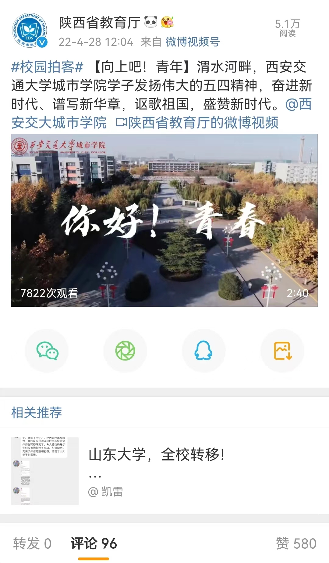 近日,陕西省教育厅以视频方式展现了西安交大城市学院学子的青春风采。具体链接如下: