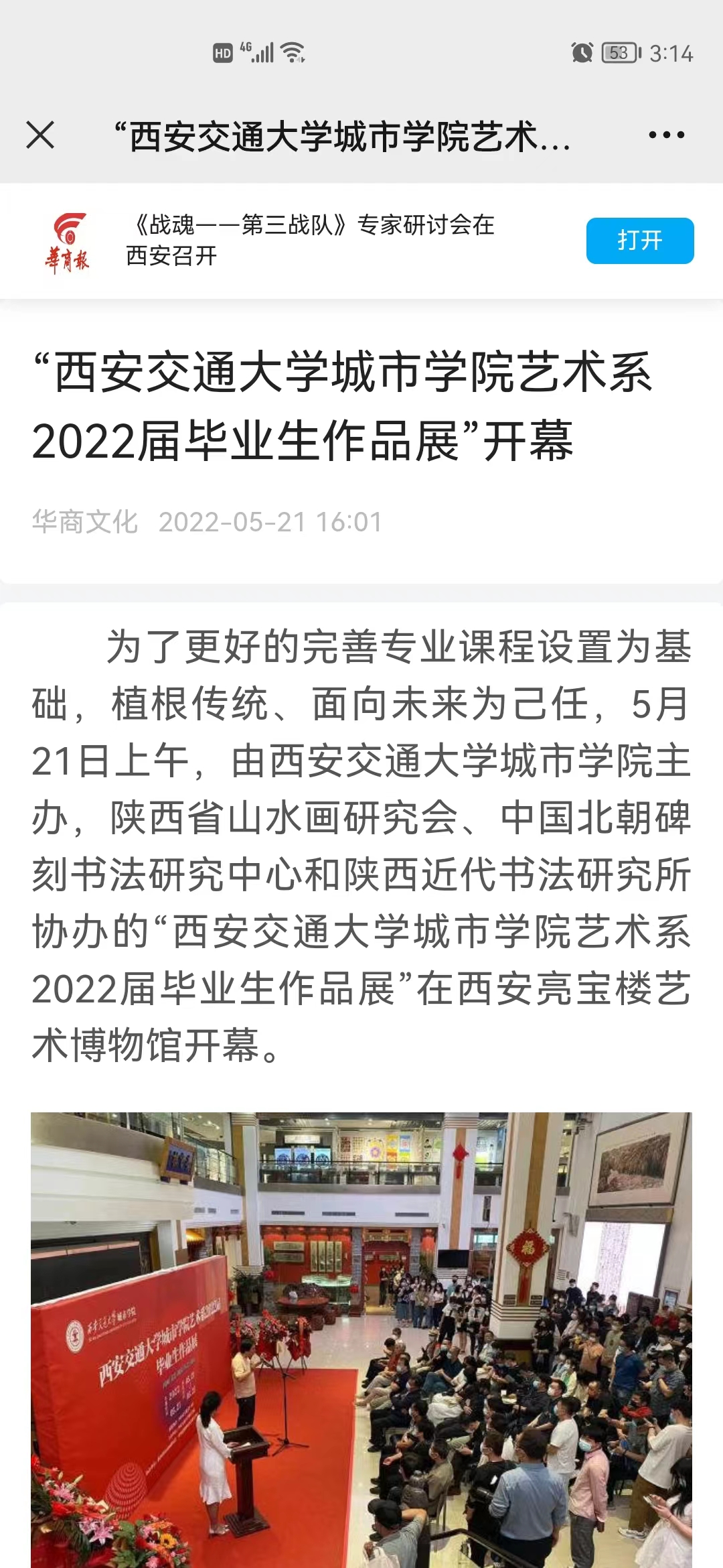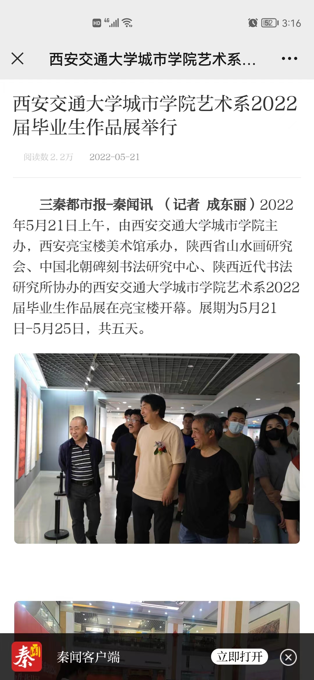 三秦都市报-秦闻客户端、华商传媒集团-二三里资讯、文化艺术报人民号、网易新闻客户端、文化艺术网、亮宝楼官微等媒体或官网、官微报道了此次开幕仪式,具体链接如下: