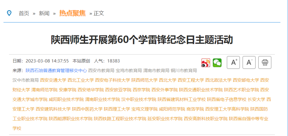 近日,陕西省教育厅报道了学院学雷锋系列活动。