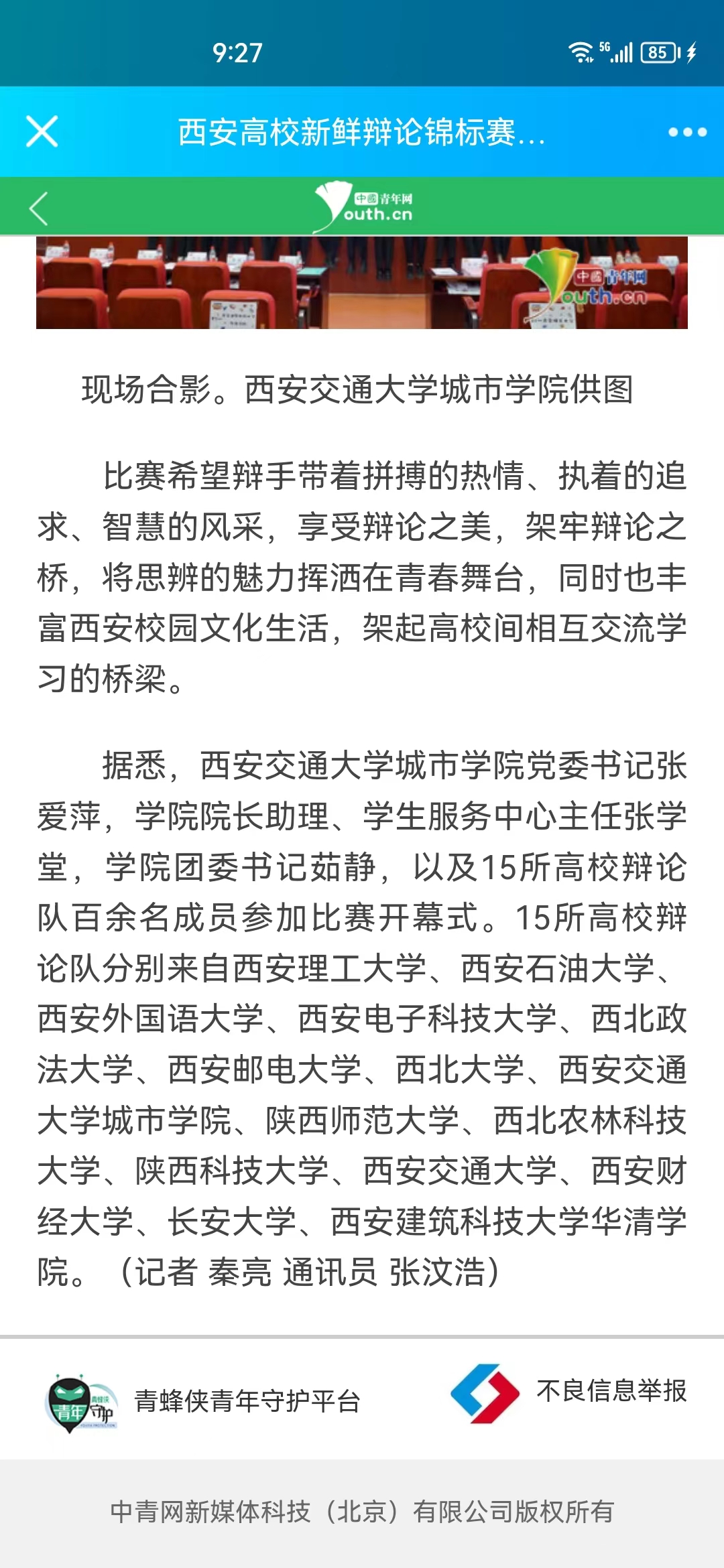 近日,中国共青团网报道了学院举办西安高校新鲜辩论锦标赛内容。具体如下: