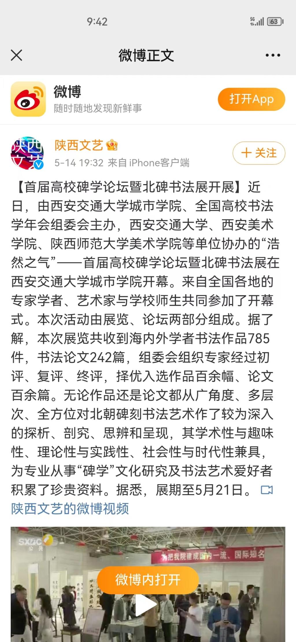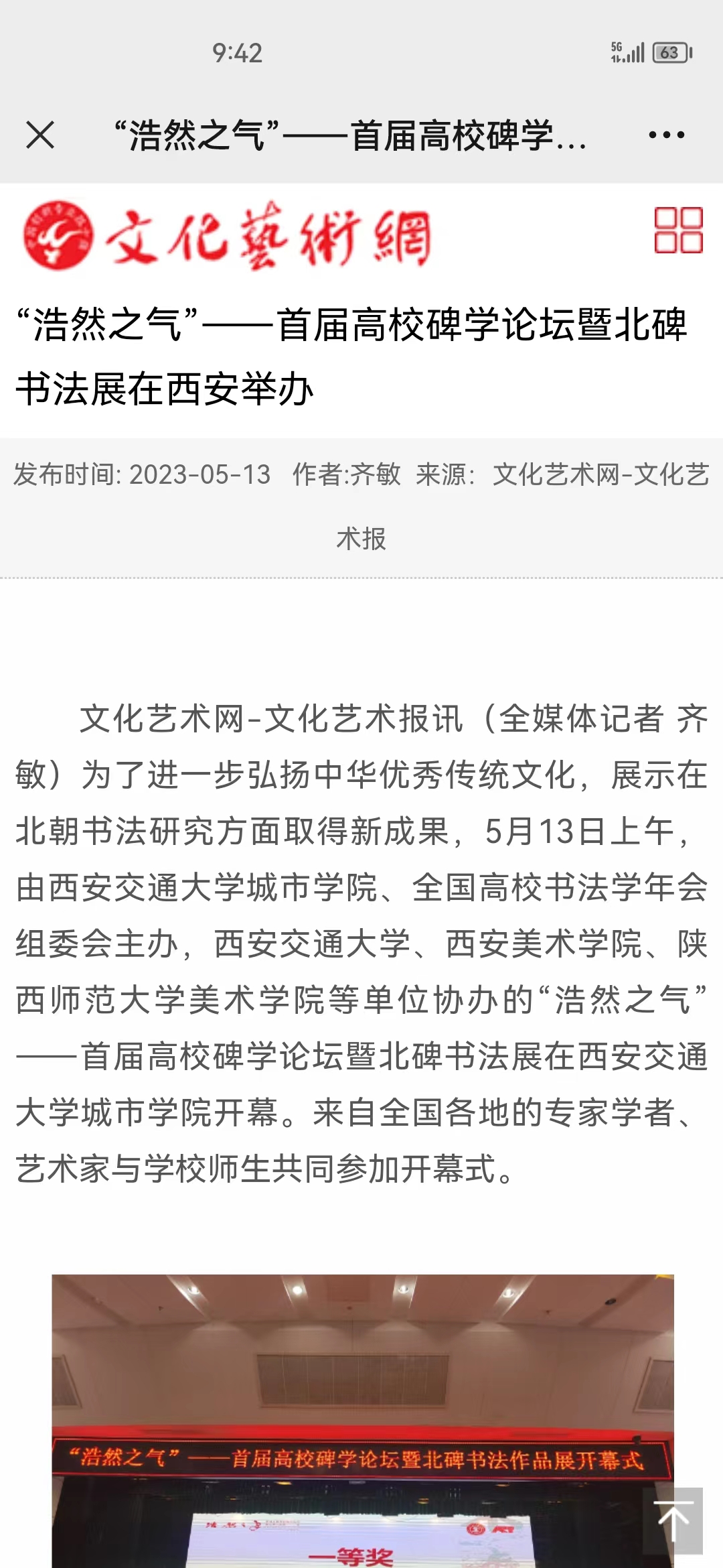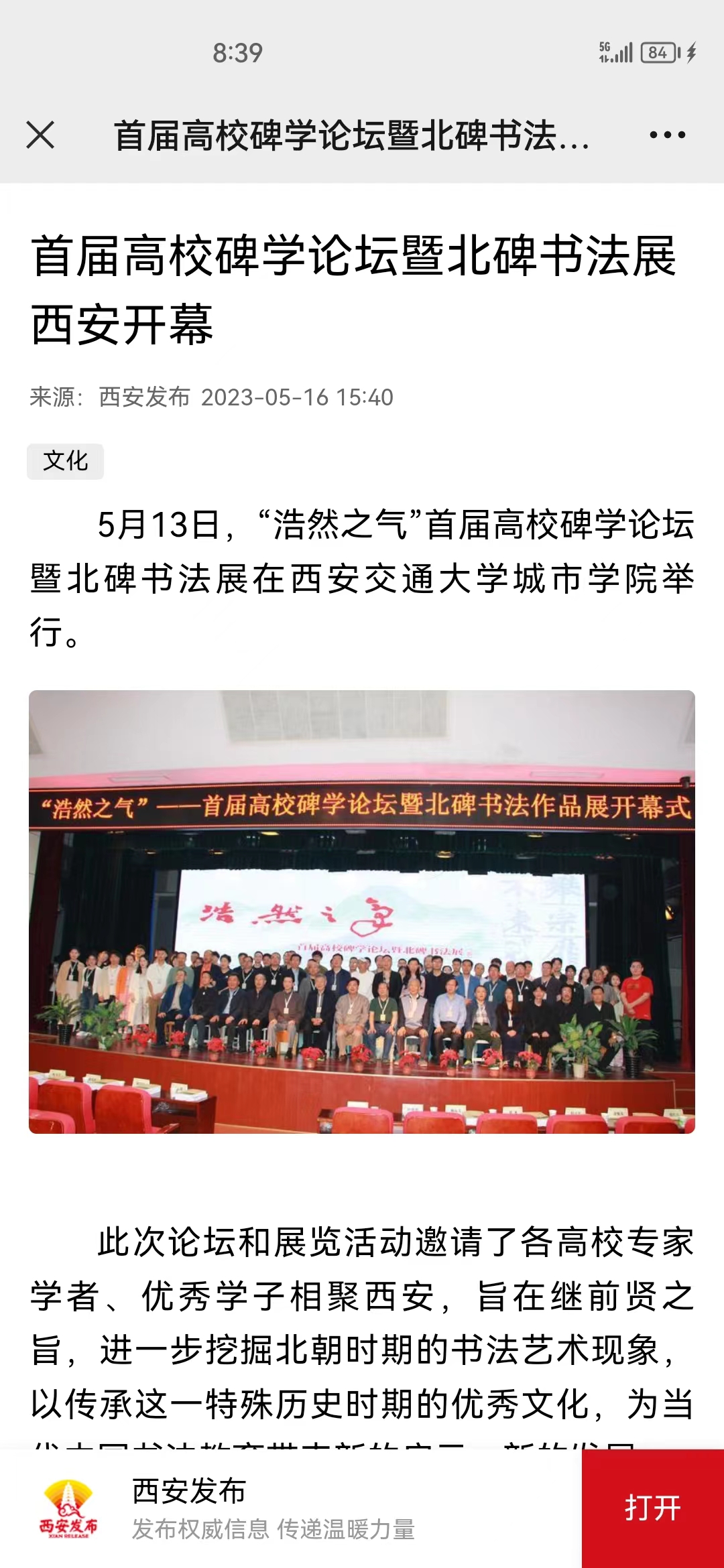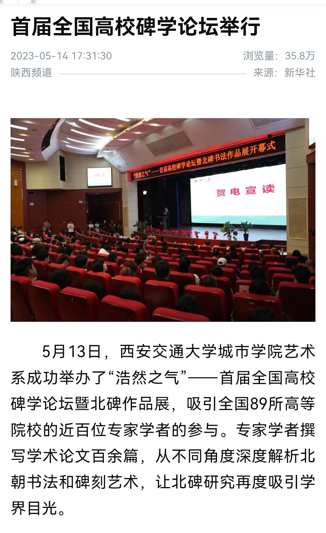 近日,新华社、三秦都市报-秦闻客户端、西安发布、西安新闻网、大学书法杂志、文化艺术网、陕西文艺、央文文化新传媒、译艺术、书画频道等对首届全国高校碑学论进行了报道。