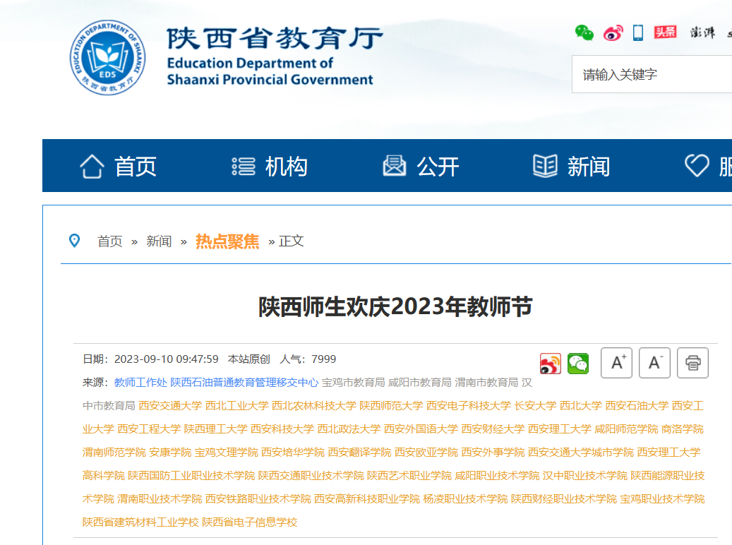 近日,陕西省教育厅报道了学院欢庆教师节相关内容。