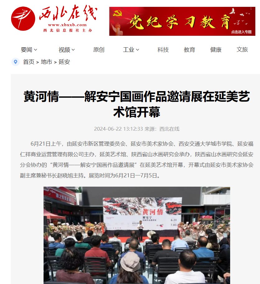近日,西北在线对我校解安宁国画作品邀请展在延美艺术馆开幕进行了报道,具体如下: