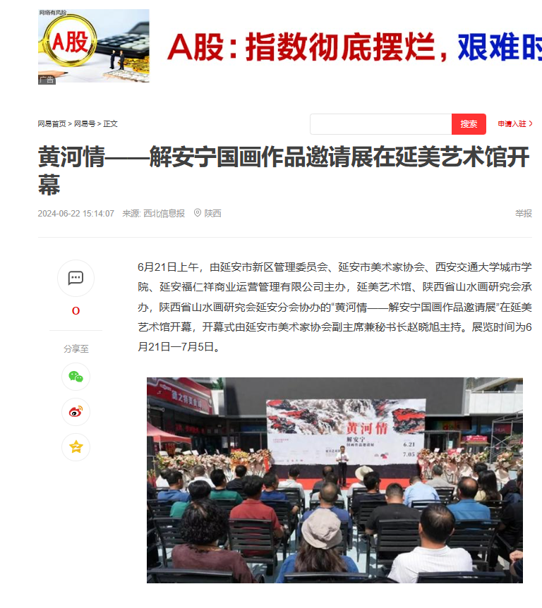 近日,网易-西北信息报对我校解安宁国画作品邀请展在延美艺术馆开幕进行了报道,具体如下: