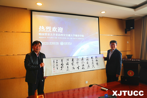 随后,世宗大学一行到管理系、艺术系参观交流,对西安交大城市学院校企专项班、艺术系特色学科设置予以高度赞扬。