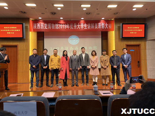 11月16日上午,2019年陕西历史博物馆优秀大学生讲解员表彰大会在陕西历史博物馆多功能厅举行,我院团委茹静老师与14所高校的老师代表及130余名大学生讲解员参加了此次表彰大会。我院讲解队荣获2019年度讲解工作最佳团队奖(唯一一所),陈新月、张明钥等11名同学荣获优秀大学生讲解员,刘聪颖同学荣获讲解标兵,秦航同学荣获突出贡献奖(全馆共2名)。