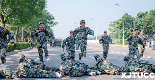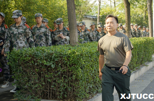 拉练当日气温适宜,阳光却格外刺眼,全团上下士气高涨,口号嘹亮,大家的情绪就像阳光般热烈。在徒步拉练中,男、女生连分别加入了“突击歼敌”“隐蔽疏散”科目内容,给单调的行军增添不少乐趣。一路上,通勤车运送着哨兵,在每个路口为拉练队伍保驾护航;教官和指导员分别走在队伍的首尾,给学员们加油鼓劲;后勤科的老师分发的矿泉水,给大家送来丝丝清凉。