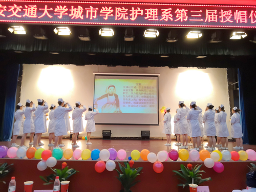 为弘扬南丁格尔精神,展示新时期“白衣天使”形象,增强我系学生的责任感、使命感、荣誉感,yl7703永利官网护理系于6月10日下午在教二报告厅举行了第三届授帽仪式。莅临此次活动的嘉宾有学院副院长崔杜武、护理系主任李小妹、西安交通大学第一附属医院护理部主任辛霞、经济系学生工作主管廉宇婷、外语系团工委书记蔺一方及护理系全体教职工。