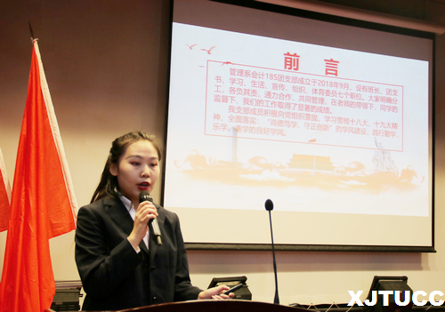 大会在激昂的中国共产主义青年团团歌中拉开帷幕。首先,学院团委书记吴昊翔宣读表彰决定,肯定和认可了2018-2019学年基层团组织和广大青年团员的努力和成绩,同时激励获奖个人和组织继续顽强拼搏,建功立业,争取取得更大的成绩。接着,团委组织部常务副部长李炳儒同学带领在场全体团员重温入团誓词,不忘入团初心,牢记青年使命,坚定理想与信念,在今后的日子里继续发挥团员先进性。随后,管理系会计185团支部进行风采展示,从多个角度展示了活力四射的基层团组织。机械系团工委书记杨耀聪老师从团学工作五大平台方面展现了一个充满正能量,积极向上的五四红旗团工委。展示完毕,现场参会的领导和老师分别对今年五四评优的获奖个人和先进集体进行颁奖。