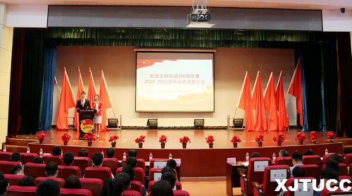 为深入贯彻落实党的十九大精神、团的十八大精神、习近平总书记系列重要讲话精神及习近平总书记关于青年工作的重要思想,充分调动广大团员青年的积极性,总结经验、树立典型、表彰先进,激励全院青年勤奋学习、踏实进取,以崭新的面貌迎接五四运动100周年,学院团委于4月30日中午在教二报告厅召开了纪念五四运动100周年暨2018-2019学年五四表彰大会。莅临本次大会的领导和老师有:学院党委书记冯民柱、学生服务中心主任张学堂、计算机系主任缪相林、管理系常务副主任冀祥、传播系常务副主任刘强、外语系副主任赵永生、艺术系副主任张春新、电信系主任助理张永超、机械工程系主任助理史艳莉、土建系主任助理黎莹、学生服务中心主任助理马瑞、团委书记吴昊翔及各系的老师们。本次大会由文章、刘聪颖主持。