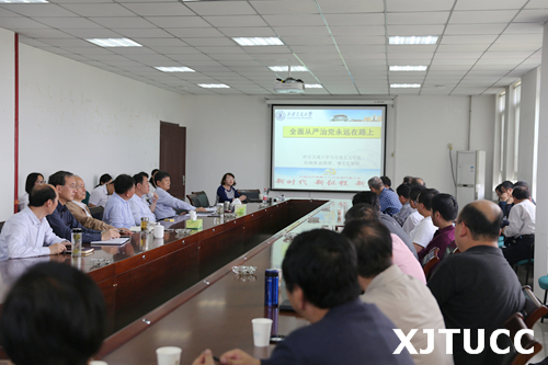 4月24日下午,西安交大城市学院中心组开展专题学习,西安交通大学马克思主义学院杜晓燕副教授应邀做题为《全面从严治党永远在路上》的专题讲座,城市学院党委书记冯民柱主持会议。
